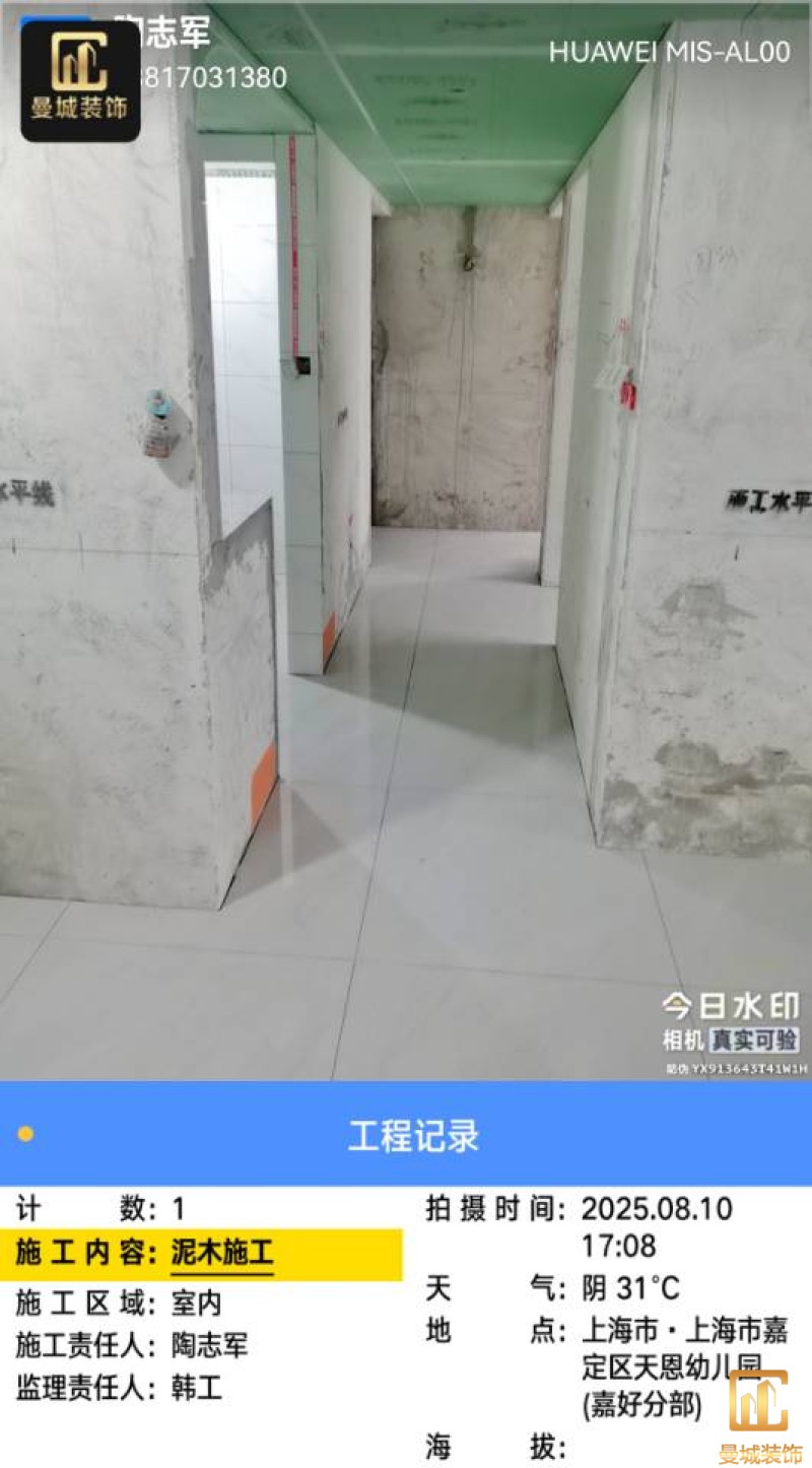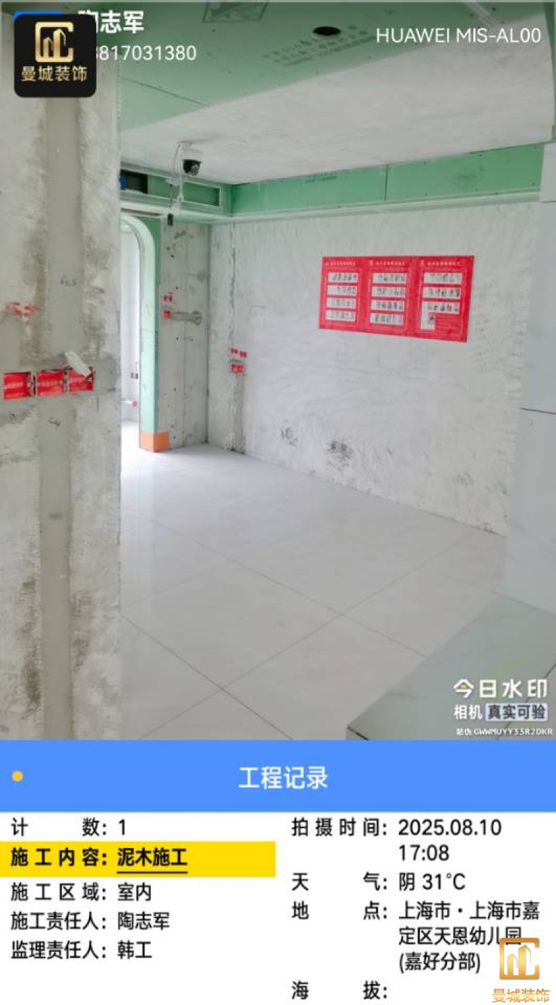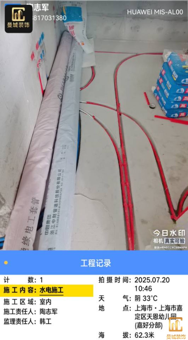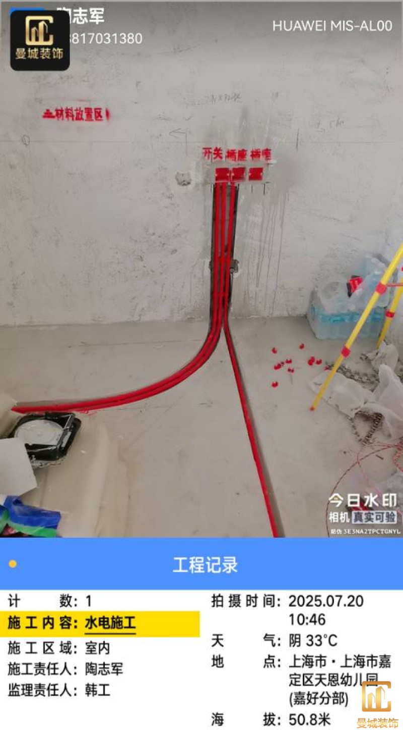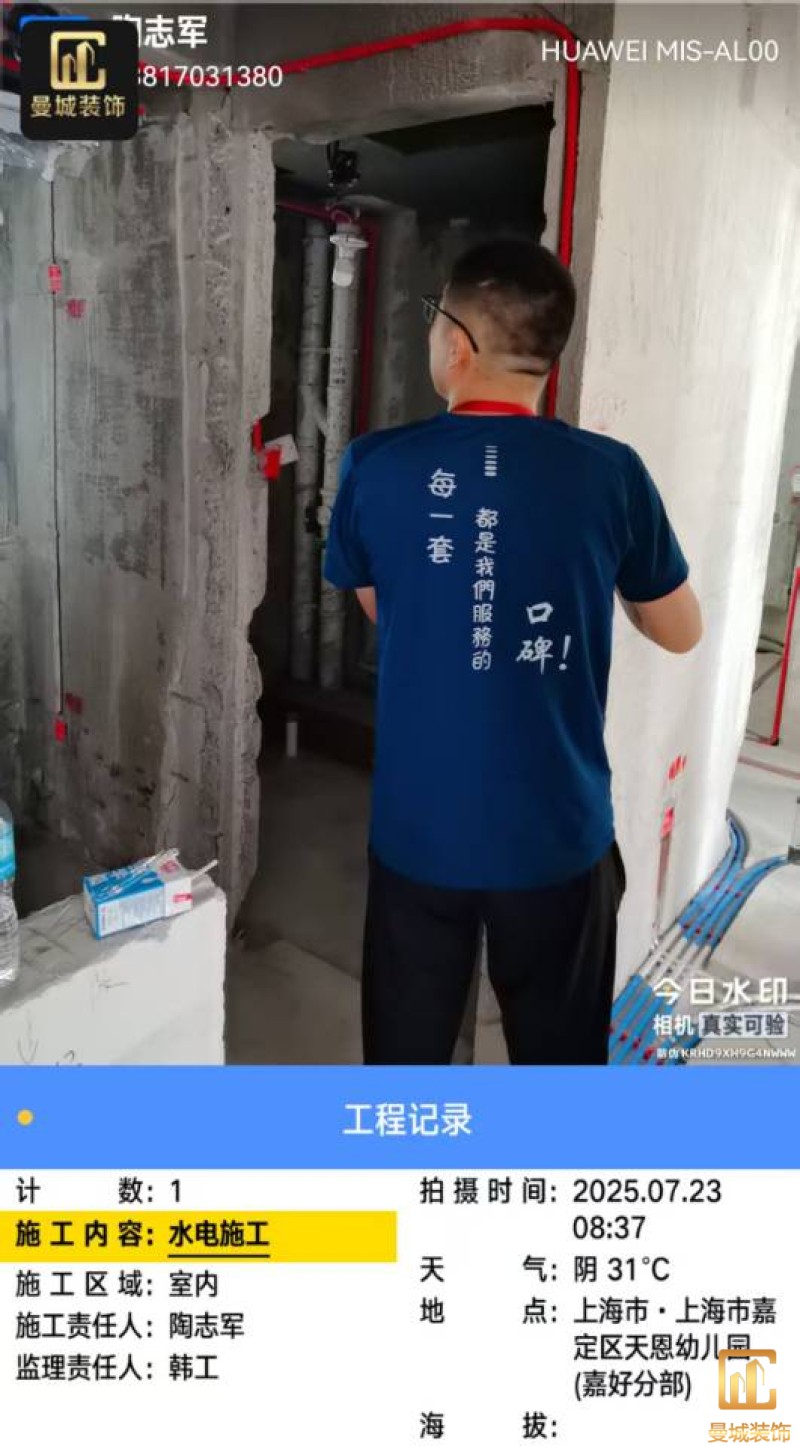 尊敬的业主老师:您好! 我是设计师穆林。今日进行水电验收,经过仔细的检查与核对,电路、水路点位及尺寸与上次确定的方案保持一致。 在验收过程中,我们也对一些细节进行了再次的审视和考量。对于发现的需要改动的地方,我会及时进行修正,并将相关信息发到施工群,以便施工团队能够清晰了解,从而保证后续施工的质量和进度。 水电验收完成后,工程部将会安排泥工进场开展杂活施工。我也会持续关注工程进展,与施工团队保持密切沟通,确保每一个环节都符合设计要求和您的期望。 感谢您对我们工作的信任与支持,我们将全力以赴为您打造理想的家园。 设计师:穆林