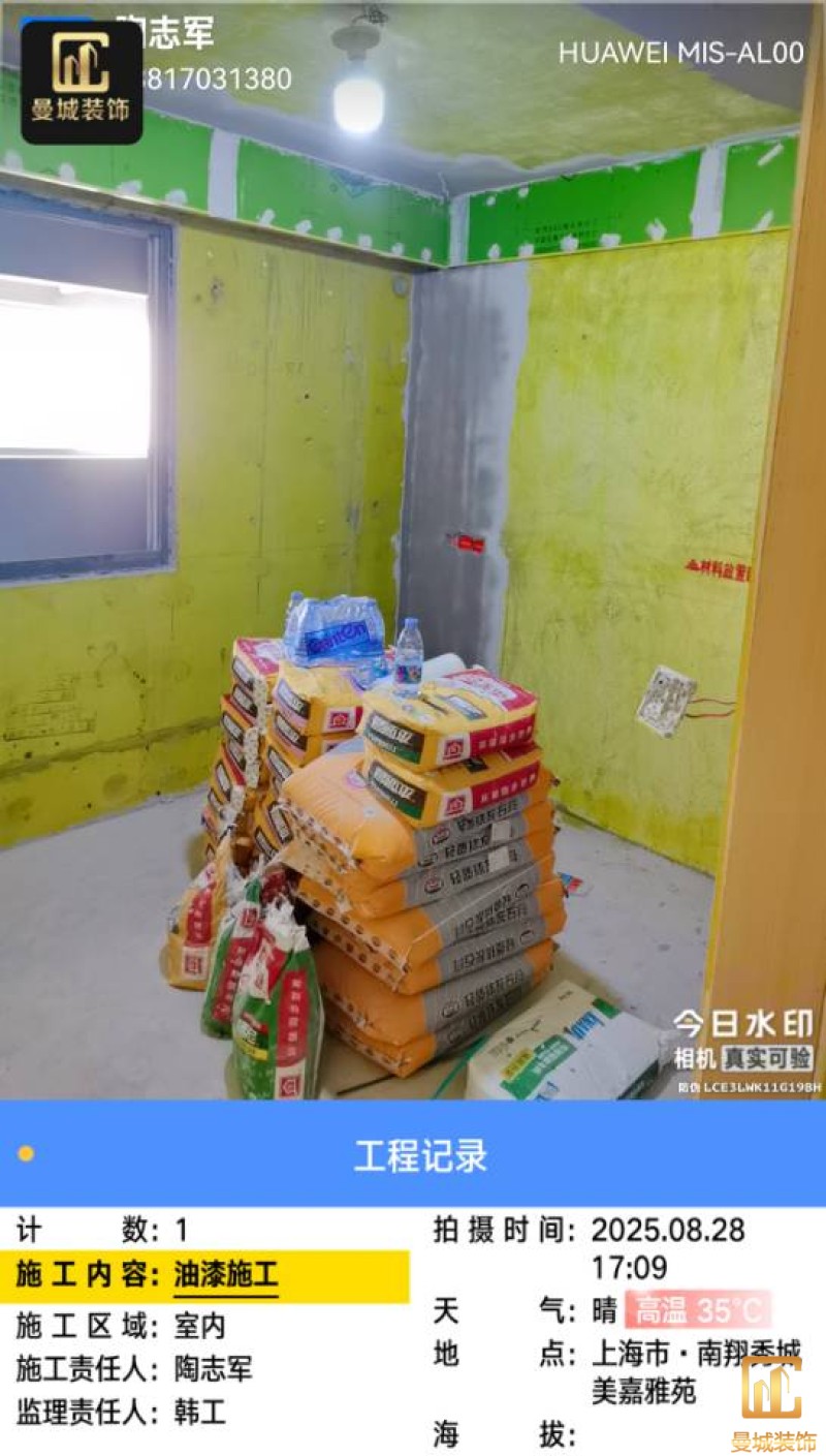 油漆材料已送达现场,安公司要求已摆放在指定区域,1、腻子粉美巢、墙尼美巢、石膏粉美巢、2、腻子粉龙牌、墙尼/找平石膏龙牌、石膏粉龙牌、3、腻子粉诗珑、墙尼/找平石膏诗珑、石膏粉诗珑,4、腻子粉西卡、墙尼/找平石膏西卡、石膏粉西卡。涂料多乐士、立邦 诗珑、左顿 5、找平已用过赶尺一次性批到底、6、门洞、窗口阳角部位使用阳角条已做垂直处理、现场制柜子靠墙70公分两侧已做冲筋垂直垂直误差3mm以内、7、墙面基层墙固已全部刷好,墙固作用墙固优异的渗透性能充分浸润墙体基层材料表面,通过胶联使基层密实,提高界面附着力以及灰浆或腻子和墙体表面的粘接强度,防止腻子粉脱落。8、涂料一底二面,底漆用于提高面漆的附着力、增加面漆的丰满度、提供抗碱性、提供防腐功能。9、用墙尼找平贴网格布可以有效避免墙面日久后大面积的脱落。网格布是在墙面刷乳胶漆前要向墙上贴的,这个网格布主要是为了防腐和抗裂,10、刮腻子总的二遍,第一遍是找平 第二遍是把没有刮均匀的地方找一下,第三遍是用沙子打磨 第四遍是上涂料 11、室内用找平石膏做冲筋规方垂直找平。 附着力强,防水性和抗裂性好。 装修墙面用石膏板找平 避免使用裂缝,石膏灰泥,裂缝..