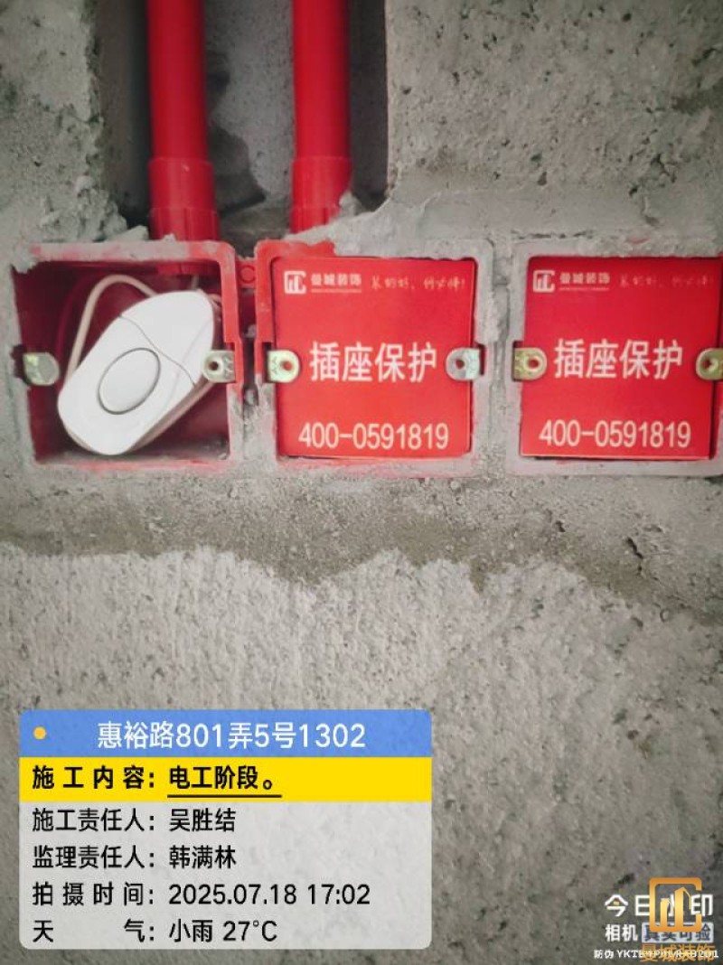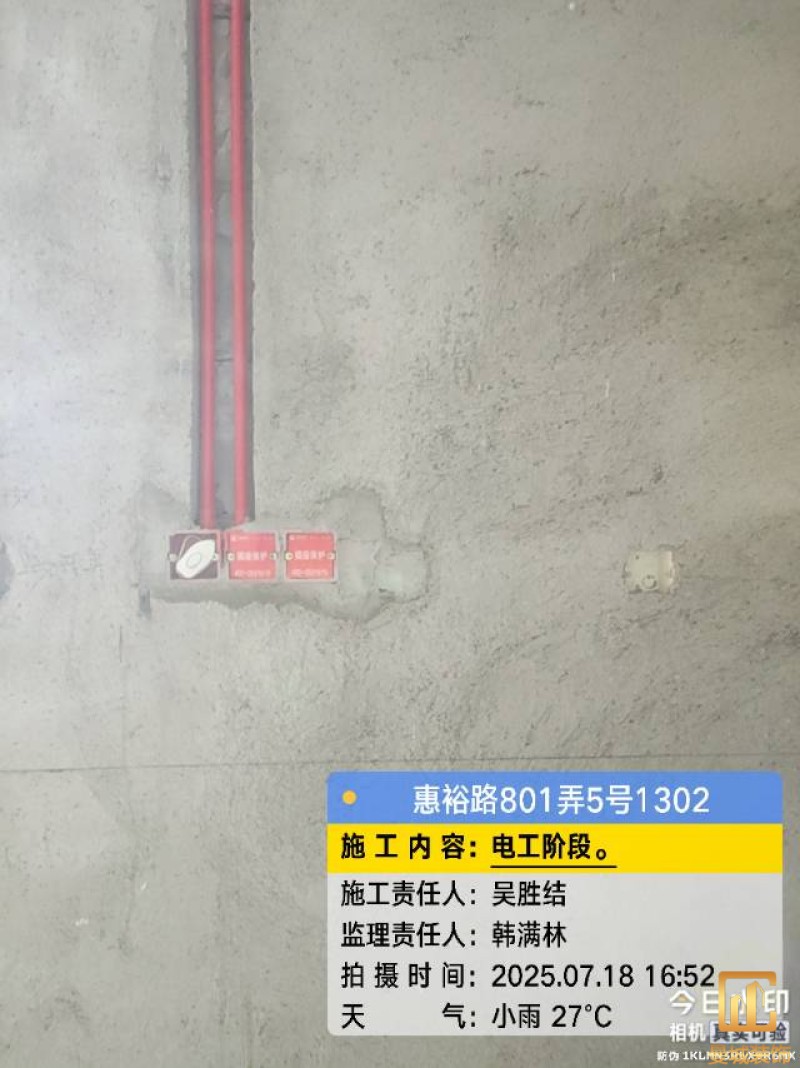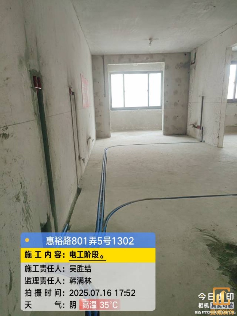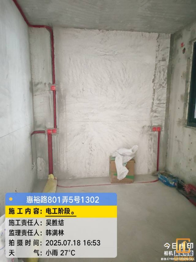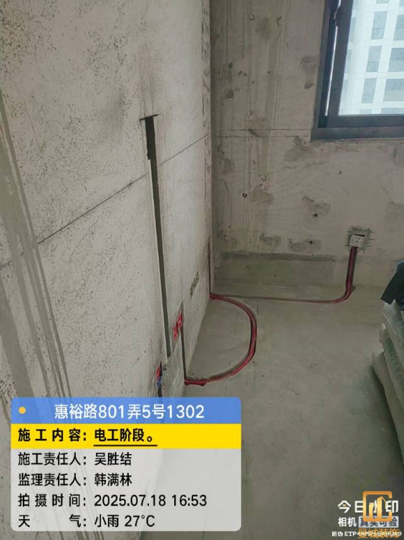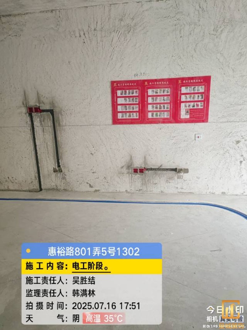 电工已进场施工,电工完工时间预估5个工作是,电线为熊猫、耐克耐。起帆电线1.5数量300米2.5数量为400米,网线超六类康普、熊猫、起帆 线管为中财/保利315中型6分管,按施工要求,厨房进线为4㎡,冰箱单独一路,卫生间进线为4㎡客厅空调为4㎡电线,总线路为11路,分别为 空调4路,厨房2路,卫生间1路,照明1路,房间插座1路,客餐厅1路。开关离地高度1.3米 插座离地35公分,空调插座离地高度2.2米。房间双控开关高度为550-600之间。开关插座总点位为80个。水走顶,电走地,水电不同槽,横槽不超过1米。地面开槽大弧湾工艺,强弱电间距200mm 以上,墙弱电交叉处用专用锡箔做信号屏蔽处理,默认煤气管40PVC管预埋高度离地1350cm。三角阀离地度度1400cm,电视机用50PVC管预埋高度350cm-1100cm 、默认花洒离地高度900-1000cm、马桶三角阀离地度度150-250cm,台盆三角阀离地度度350-400cm,墙排下水离地高度400-500cm,