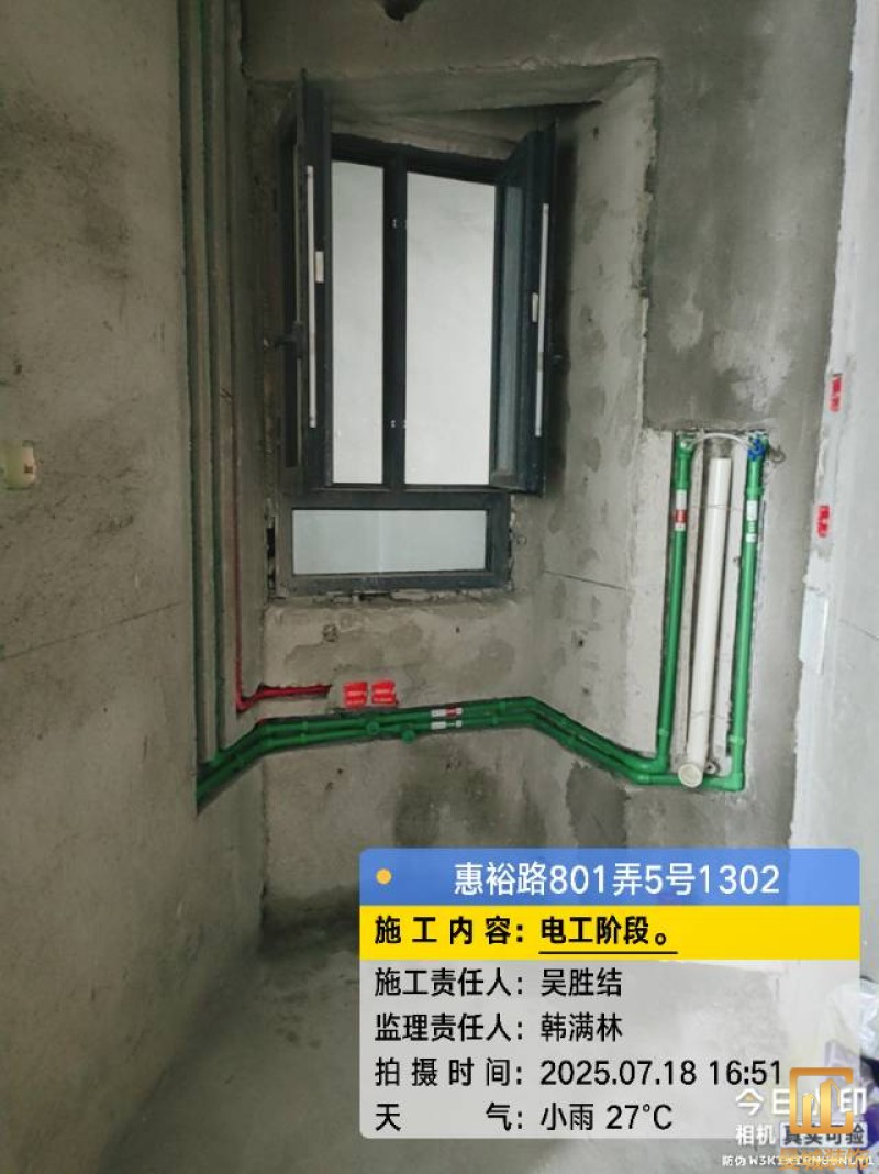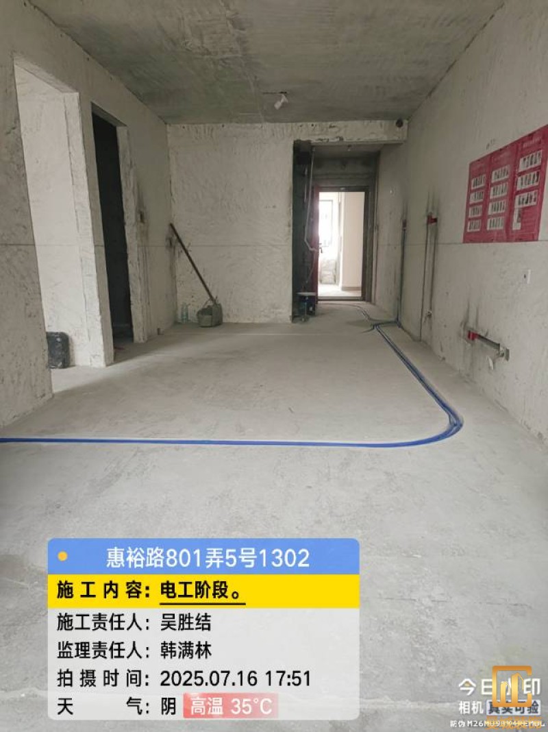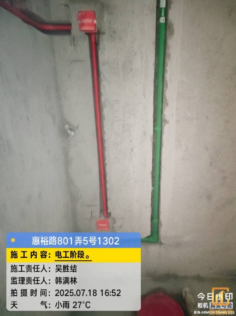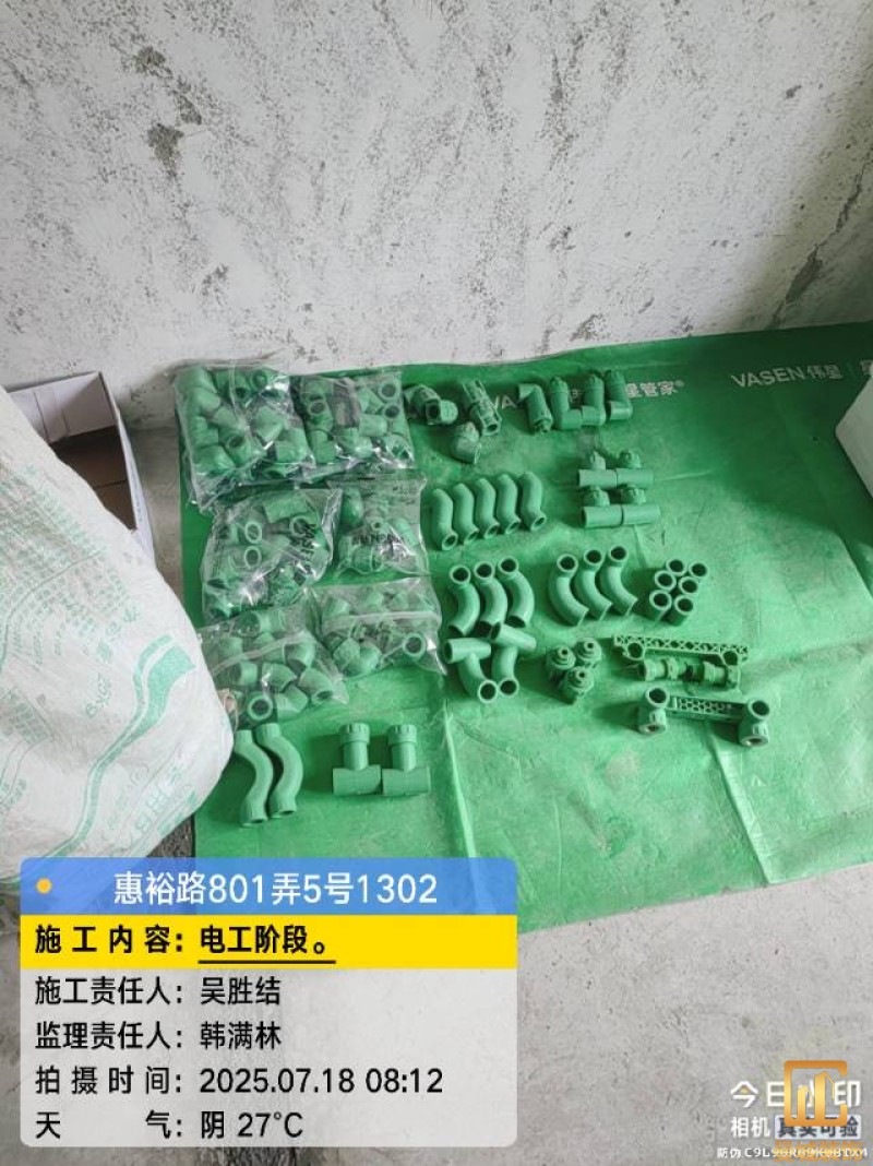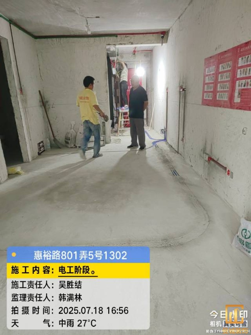 电工已进场施工,电工完工时间预估5个工作是,电线为熊猫、耐克耐。起帆电线1.5数量300米2.5数量为400米,网线超六类康普、熊猫、起帆 线管为中财/保利315中型6分管,按施工要求,厨房进线为4㎡,冰箱单独一路,卫生间进线为4㎡客厅空调为4㎡电线,总线路为11路,分别为 空调4路,厨房2路,卫生间1路,照明1路,房间插座1路,客餐厅1路。开关离地高度1.3米 插座离地35公分,空调插座离地高度2.2米。房间双控开关高度为550-600之间。开关插座总点位为80个。水走顶,电走地,水电不同槽,横槽不超过1米。地面开槽大弧湾工艺,强弱电间距200mm 以上,墙弱电交叉处用专用锡箔做信号屏蔽处理,默认煤气管40PVC管预埋高度离地1350cm。三角阀离地度度1400cm,电视机用50PVC管预埋高度350cm-1100cm 、默认花洒离地高度900-1000cm、马桶三角阀离地度度150-250cm,台盆三角阀离地度度350-400cm,墙排下水离地高度400-500cm,
