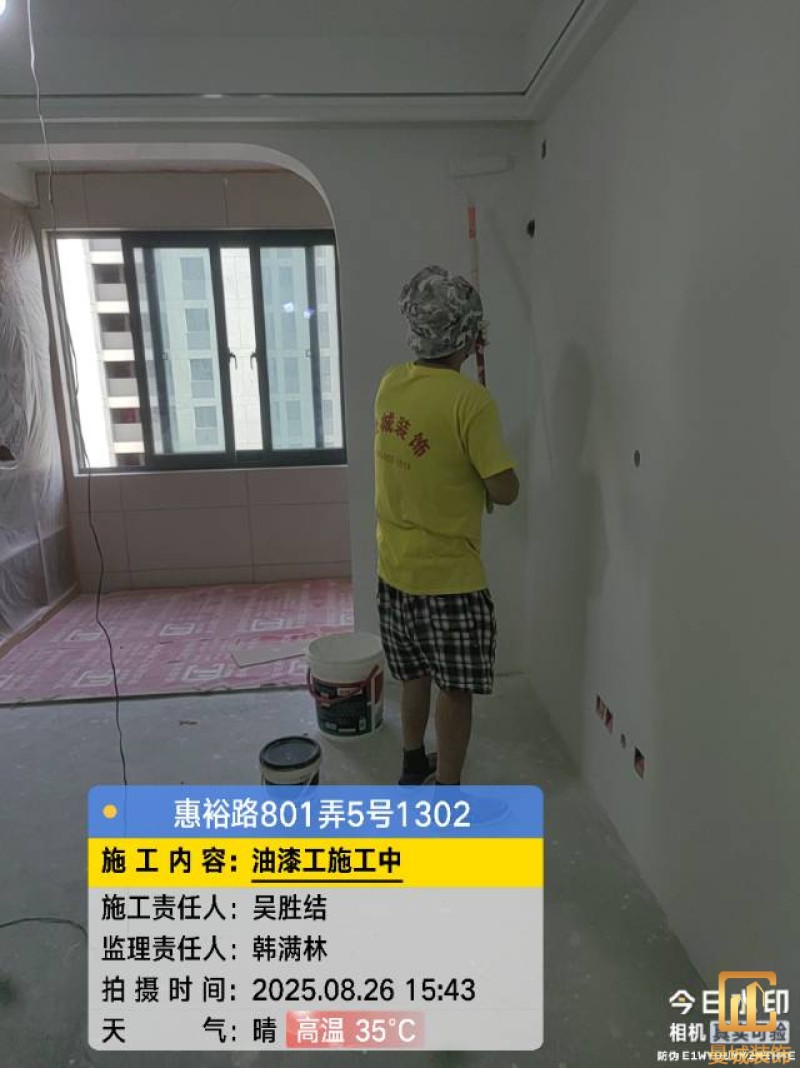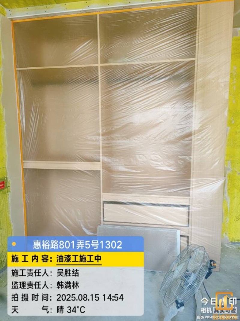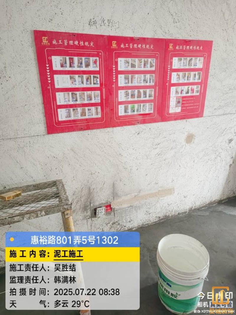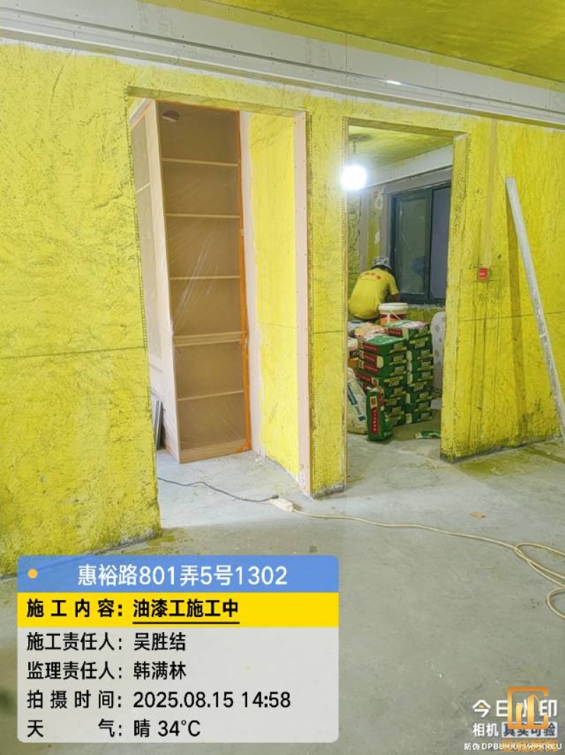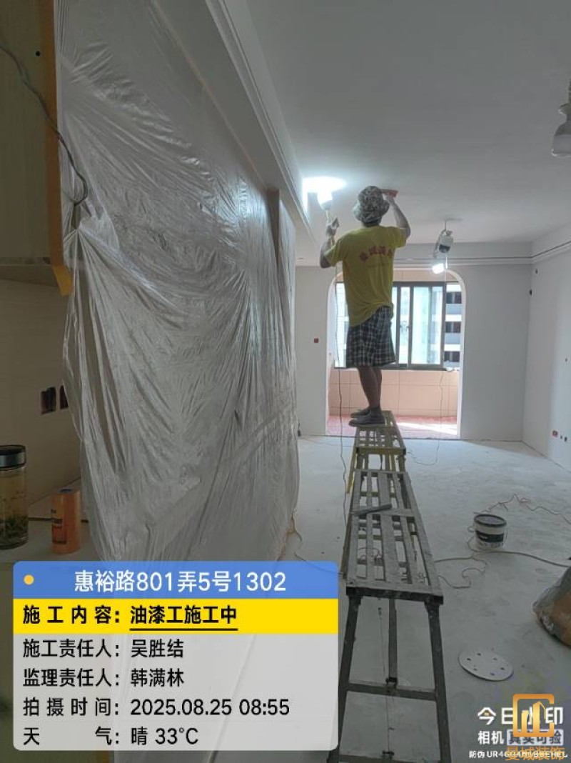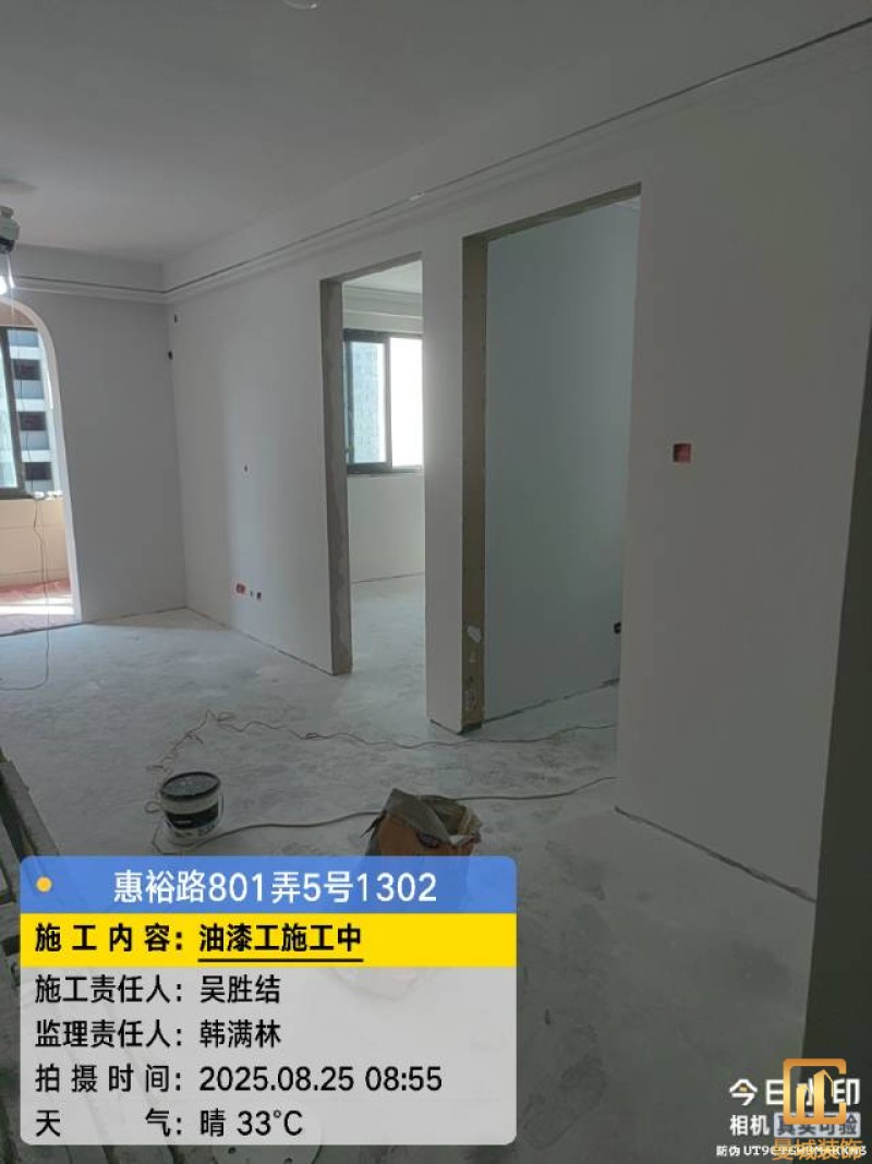 油漆材料已送达现场,安公司要求已摆放在指定区域,1、腻子粉美巢、墙尼美巢、石膏粉美巢、2、腻子粉龙牌、墙尼/找平石膏龙牌、石膏粉龙牌、3、腻子粉诗珑、墙尼/找平石膏诗珑、石膏粉诗珑,4、腻子粉西卡、墙尼/找平石膏西卡、石膏粉西卡。涂料多乐士、立邦 诗珑、左顿 5、找平已用过赶尺一次性批到底、6、门洞、窗口阳角部位使用阳角条已做垂直处理、现场制柜子靠墙70公分两侧已做冲筋垂直垂直误差3mm以内、7、墙面基层墙固已全部刷好,墙固作用墙固优异的渗透性能充分浸润墙体基层材料表面,通过胶联使基层密实,提高界面附着力以及灰浆或腻子和墙体表面的粘接强度,防止腻子粉脱落。8、涂料一底二面,底漆用于提高面漆的附着力、增加面漆的丰满度、提供抗碱性、提供防腐功能。