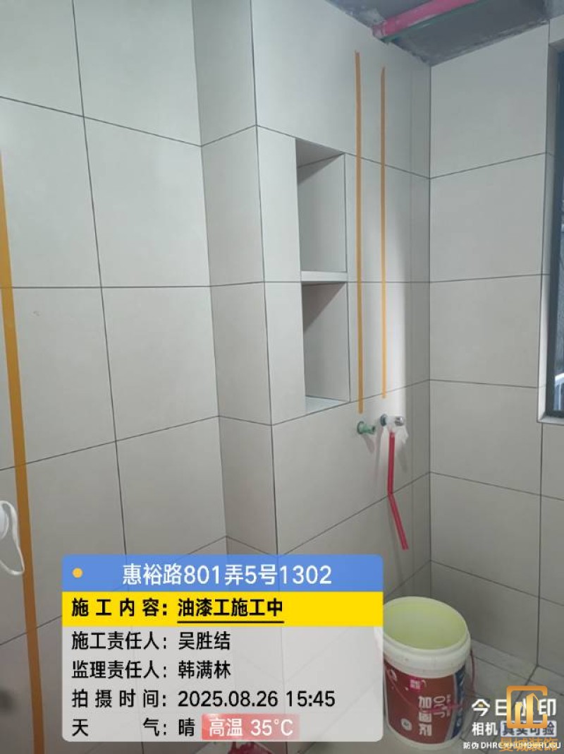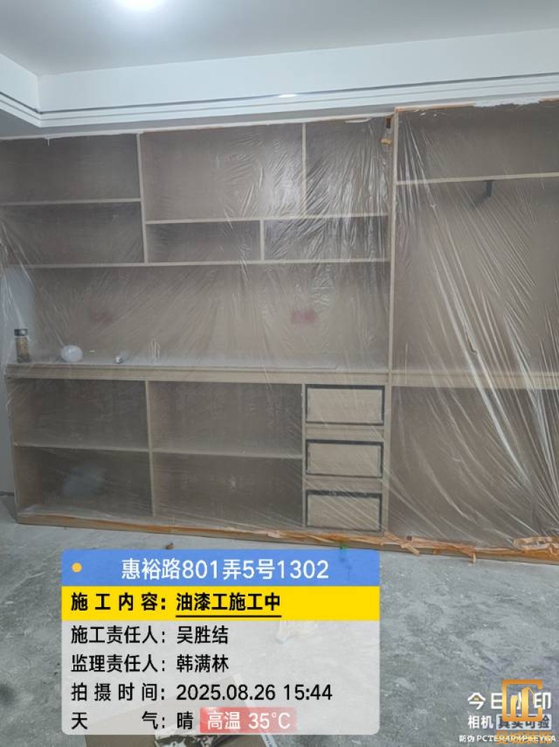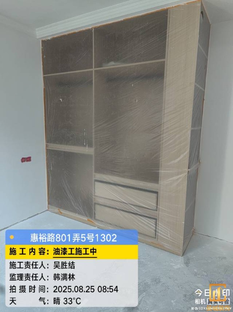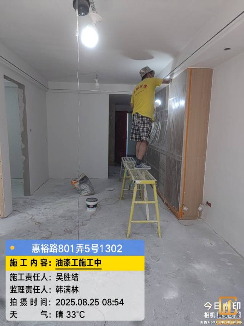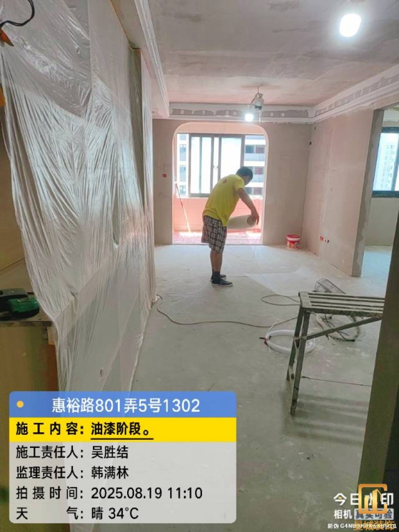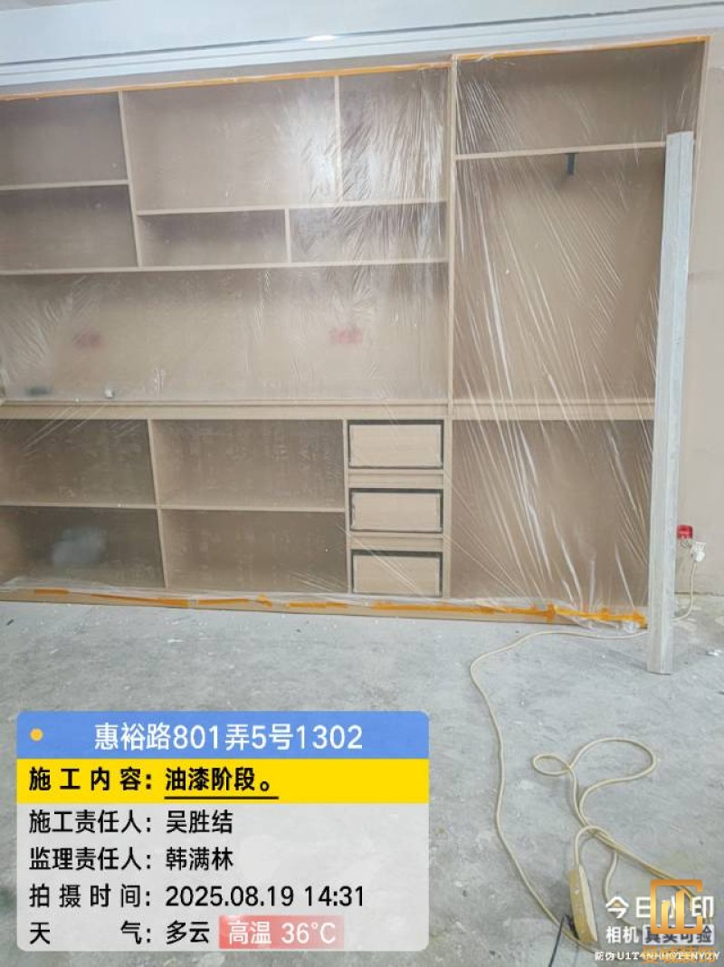 油漆材料已送达现场,安公司要求已摆放在指定区域,1、腻子粉美巢、墙尼美巢、石膏粉美巢、2、腻子粉龙牌、墙尼/找平石膏龙牌、石膏粉龙牌、3、腻子粉诗珑、墙尼/找平石膏诗珑、石膏粉诗珑,4、腻子粉西卡、墙尼/找平石膏西卡、石膏粉西卡。涂料多乐士、立邦 诗珑、左顿 5、找平已用过赶尺一次性批到底、6、门洞、窗口阳角部位使用阳角条已做垂直处理、现场制柜子靠墙70公分两侧已做冲筋垂直垂直误差3mm以内、7、墙面基层墙固已全部刷好,墙固作用墙固优异的渗透性能充分浸润墙体基层材料表面,通过胶联使基层密实,提高界面附着力以及灰浆或腻子和墙体表面的粘接强度,防止腻子粉脱落。8、涂料一底二面,底漆用于提高面漆的附着力、增加面漆的丰满度、提供抗碱性、提供防腐功能。