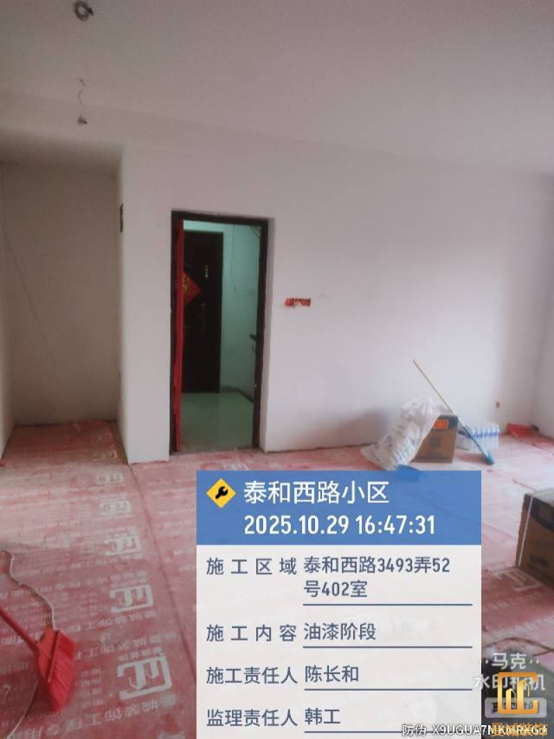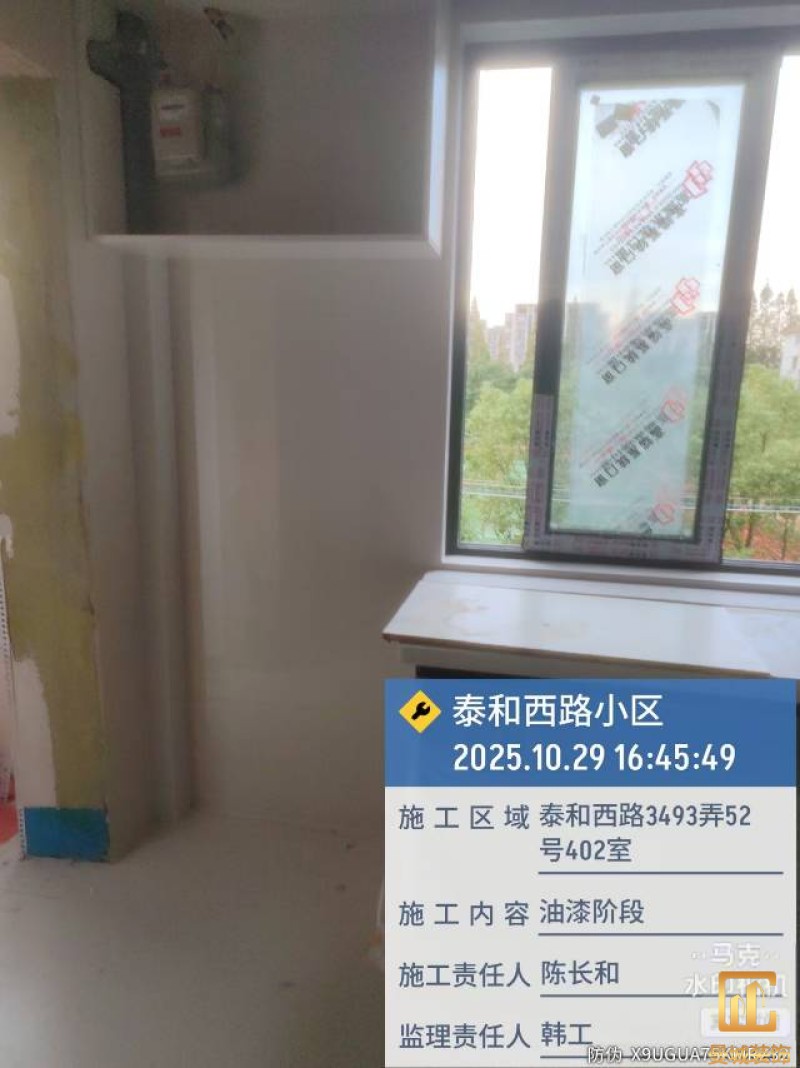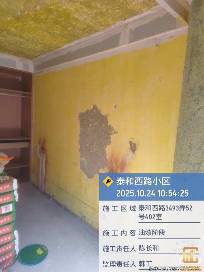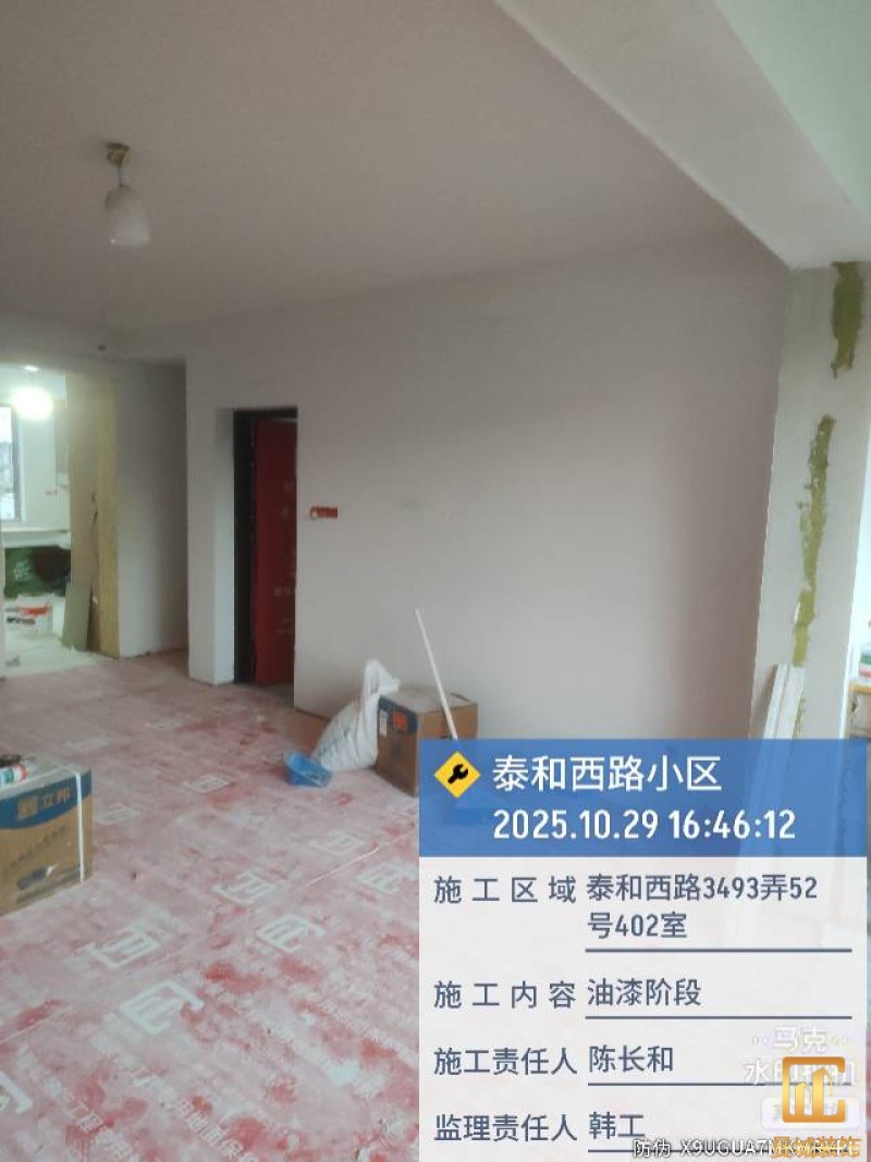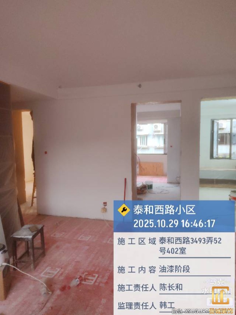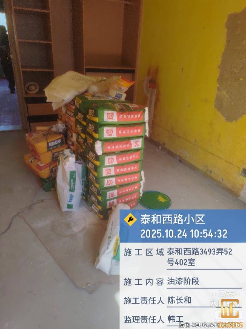 油漆材料已送达现场,安公司要求已摆放在指定区域,腻子粉美巢、墙尼美巢。