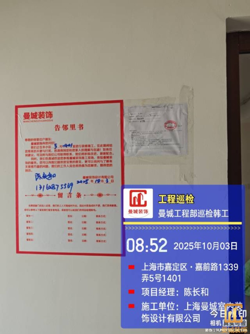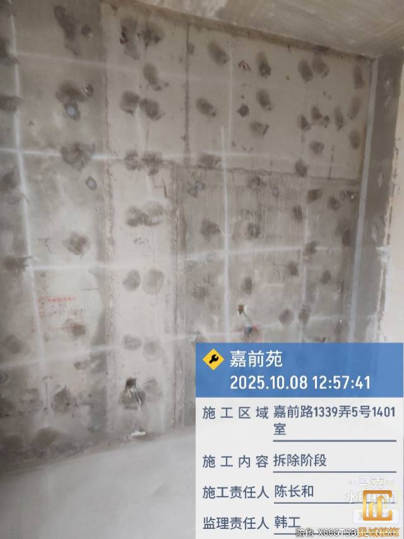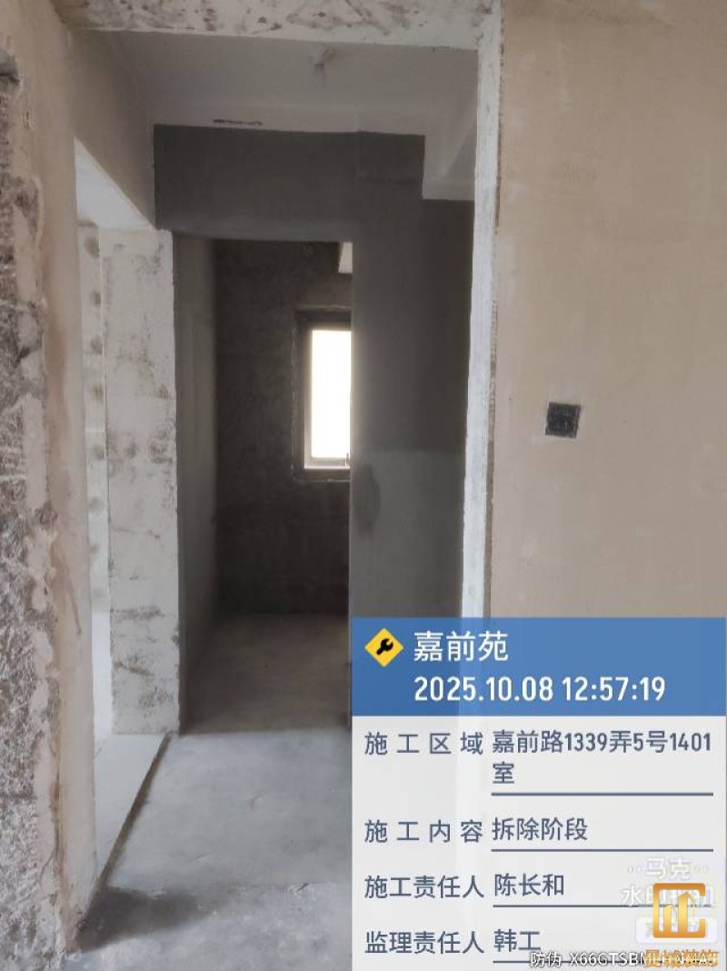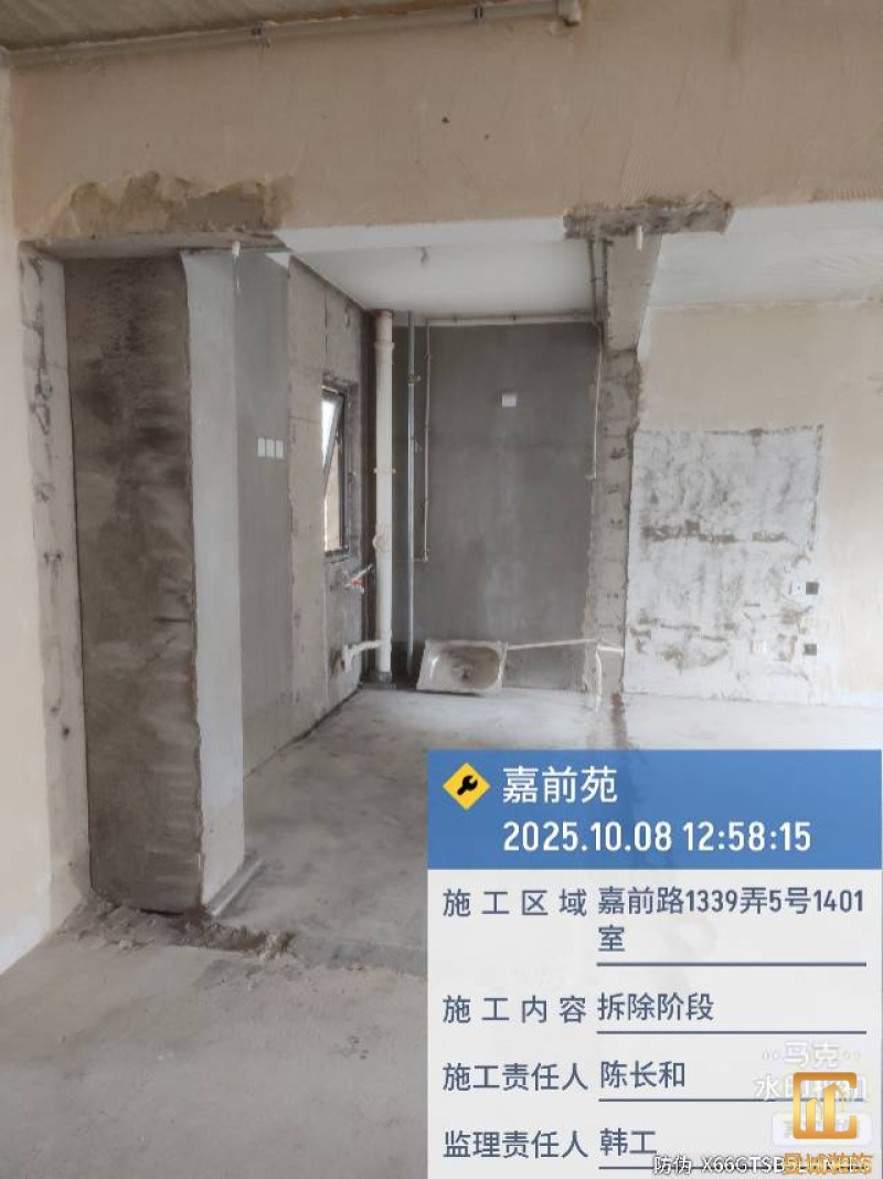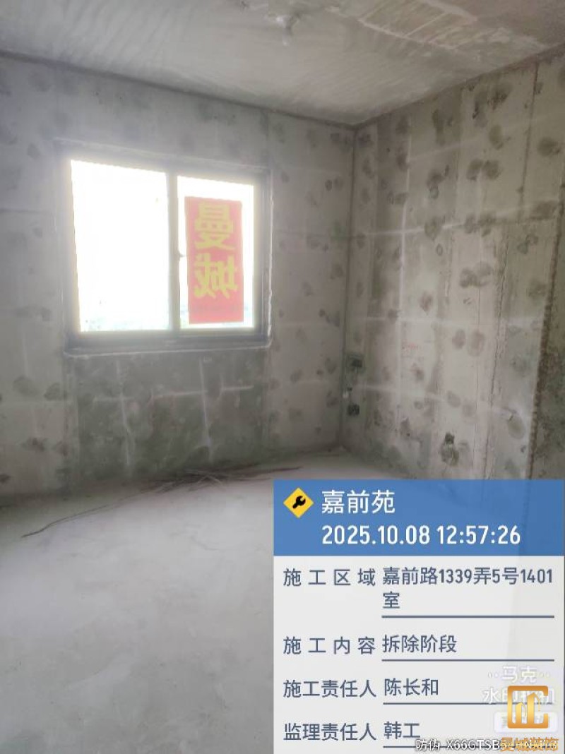 尊敬的老师您好:我是曼城力工吴彦雷,老师您家的拆除工作已按曼城拆除施工标准如期完成 ,同时我已按公司要求把相关的施工要求已上传到曼城透明装修小程序、供老师及公司工程部检查,(硬性要求卫生间防水已打磨、阳台铲除白灰后打磨见水泥),墙面空鼓处已处理完成、所有下水通畅并已保护好 现场已清理干净。防盗门窗户完好无破损,感谢老师选择曼城,祝老师装修愉快