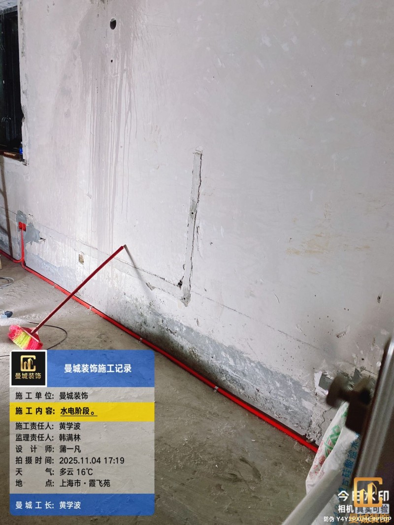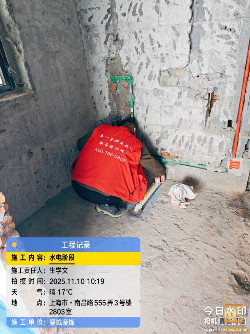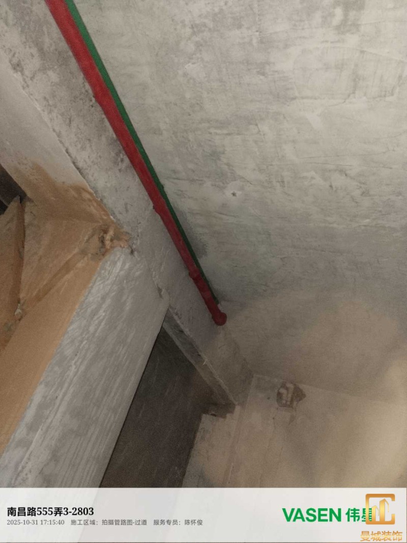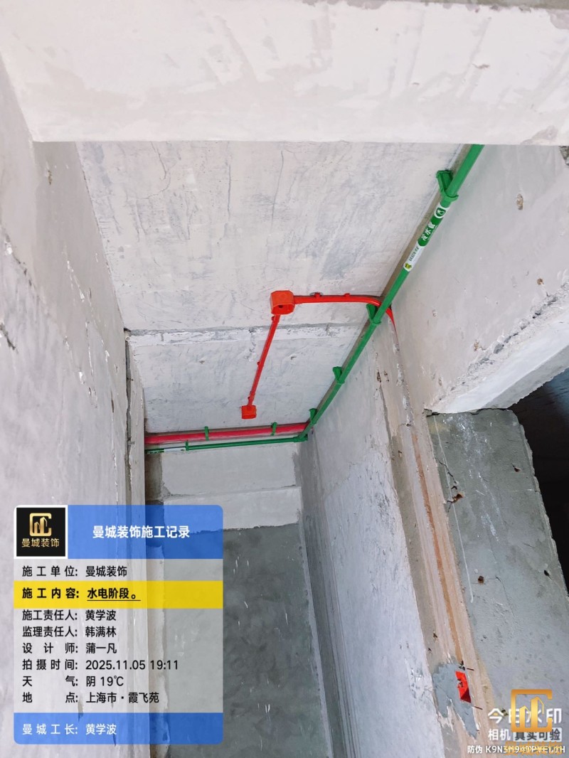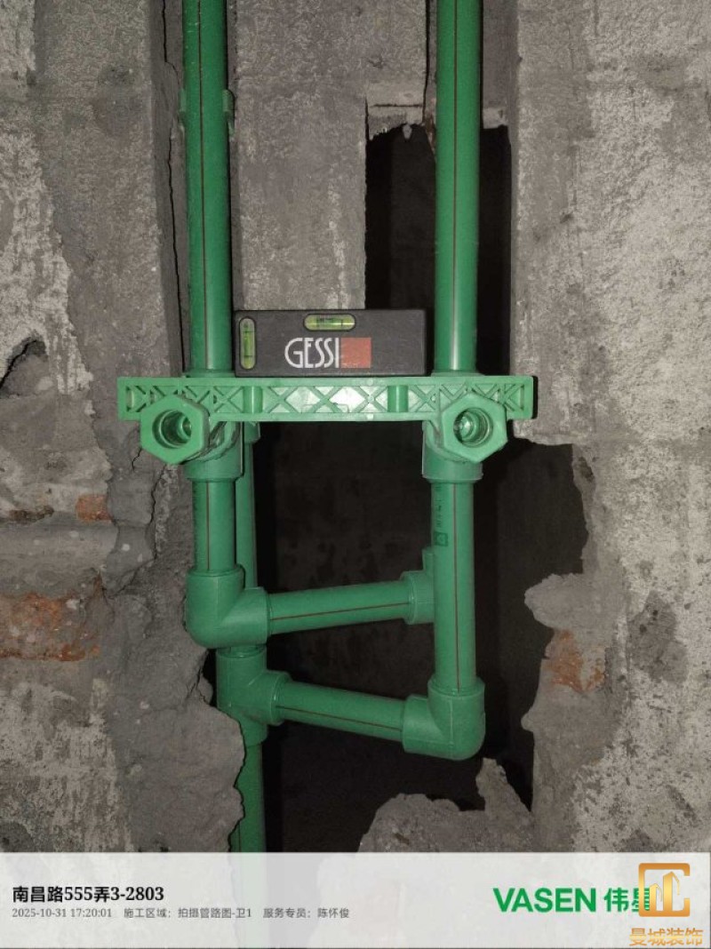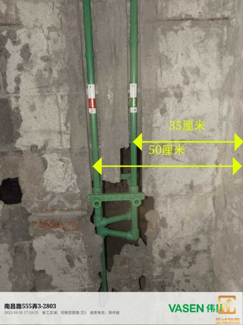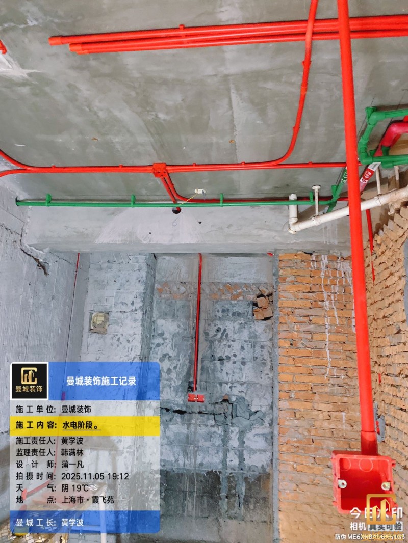 电工已进场施工,电工完工时间预估5个工作是,电线为熊猫、耐克耐。起帆电线1.5数量300米2.5数量为400米,网线超六类康普、熊猫、起帆 线管为中财/保利315中型6分管,按施工要求,厨房进线为4㎡,冰箱单独一路,卫生间进线为4㎡客厅空调为4㎡电线,总线路为11路,分别为 空调4路,厨房2路,卫生间1路,照明1路,房间插座1路,客餐厅1路。开关离地高度1.3米 插座离地35公分,空调插座离地高度2.2米。房间双控开关高度为550-600之间。开关插座总点位为80个。水走顶,电走地,水电不同槽,横槽不超过1米。地面开槽大弧湾工艺,强弱电间距200mm 以上,墙弱电交叉处用专用锡箔做信号屏蔽处理,默认煤气管40PVC管预埋高度离地1350cm。三角阀离地度度1400cm,电视机用50PVC管预埋高度350cm-1100cm 、默认花洒离地高度900-1000cm、马桶三角阀离地度度150-250cm,台盆三角阀离地度度350-400cm,墙排下水离地高度400-500cm,