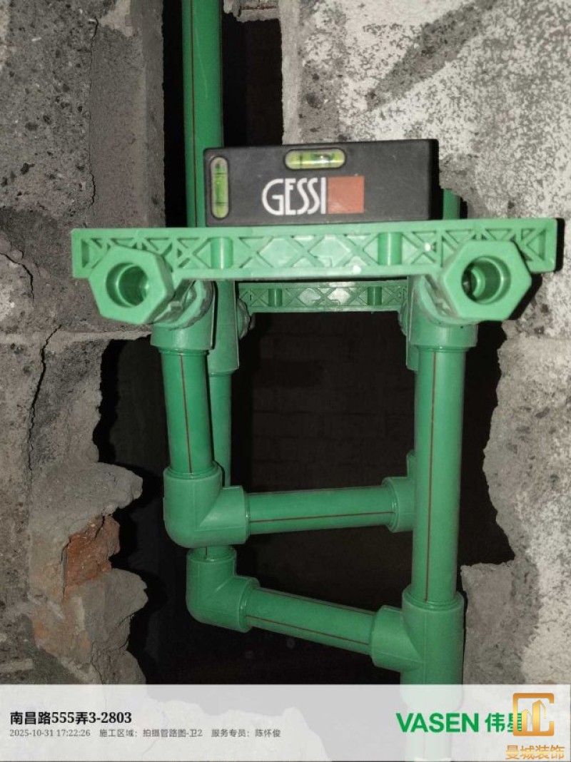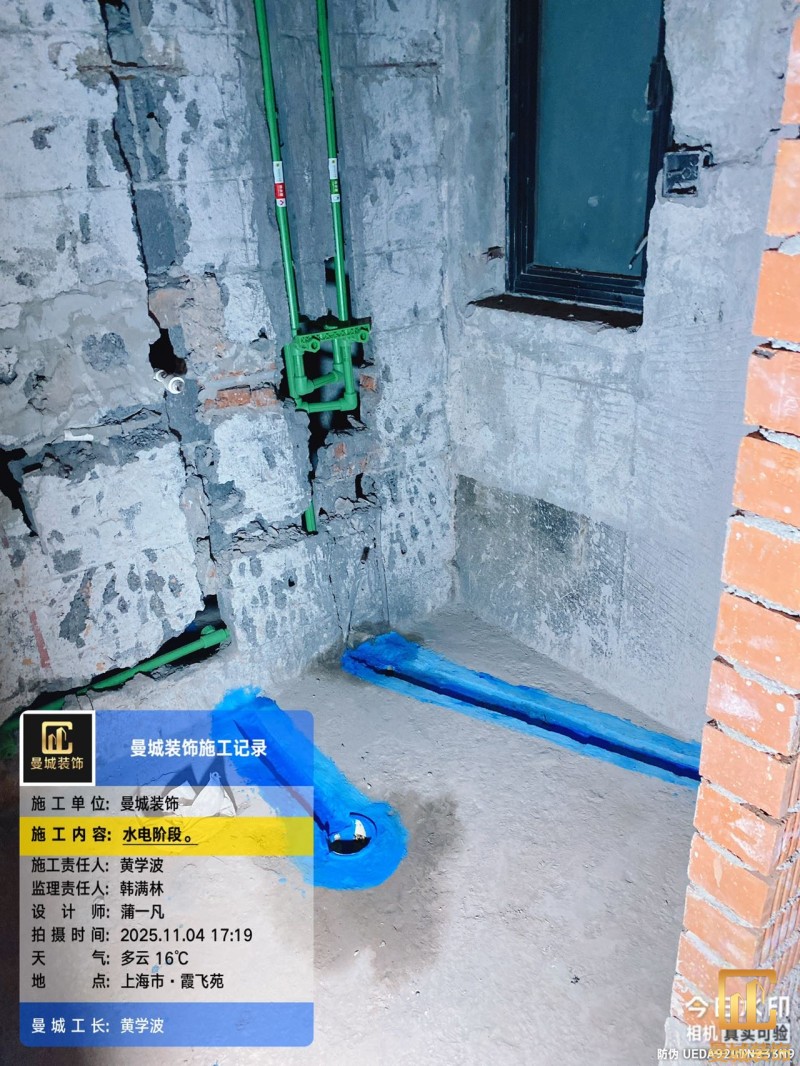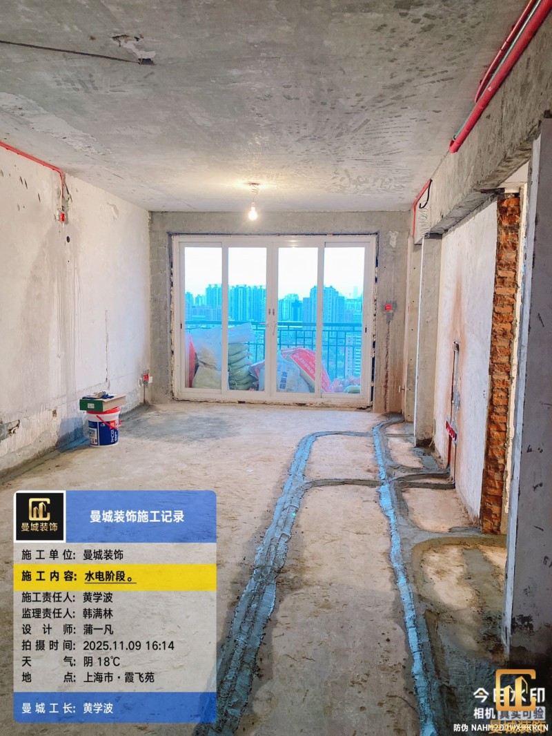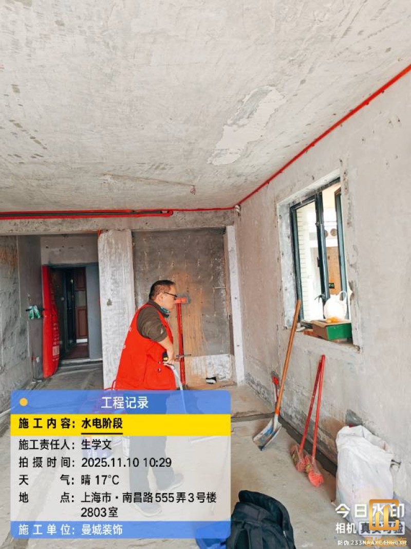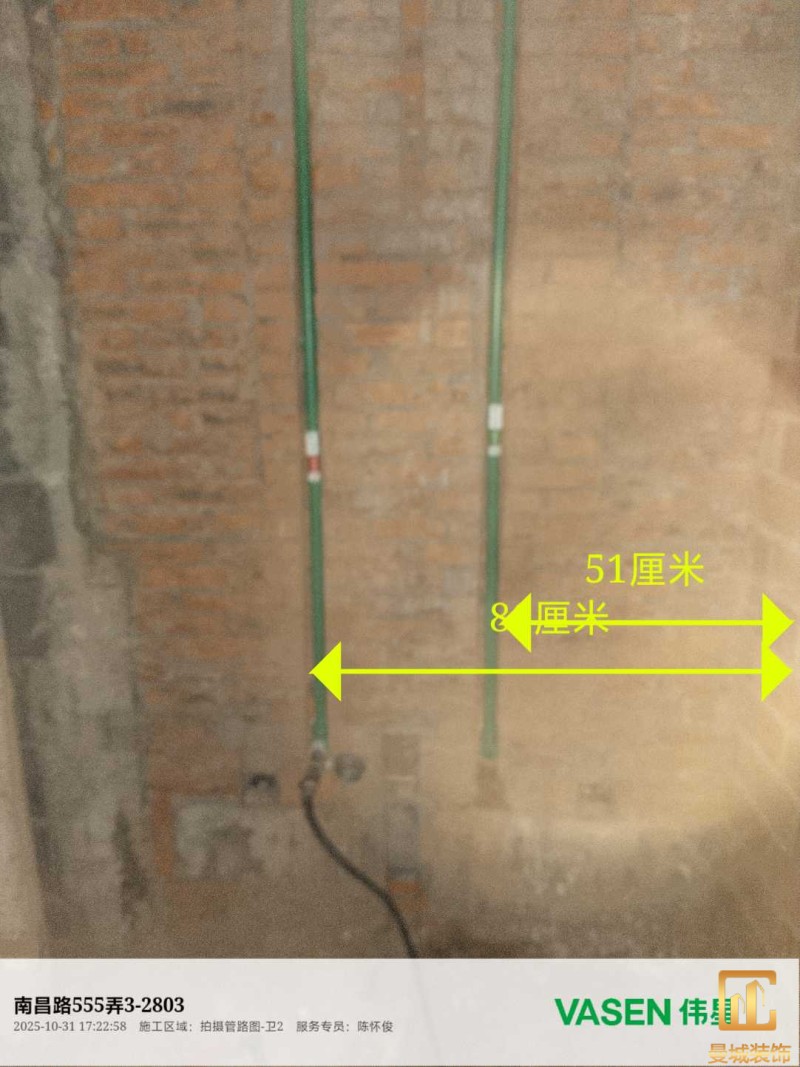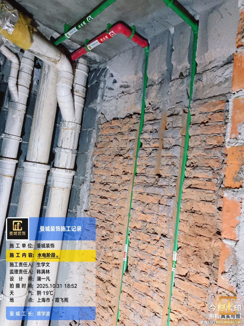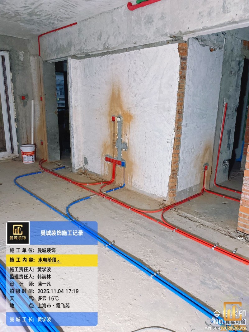 电工已进场施工,电工完工时间预估5个工作是,电线为熊猫、耐克耐。起帆电线1.5数量300米2.5数量为400米,网线超六类康普、熊猫、起帆 线管为中财/保利315中型6分管,按施工要求,厨房进线为4㎡,冰箱单独一路,卫生间进线为4㎡客厅空调为4㎡电线,总线路为11路,分别为 空调4路,厨房2路,卫生间1路,照明1路,房间插座1路,客餐厅1路。开关离地高度1.3米 插座离地35公分,空调插座离地高度2.2米。房间双控开关高度为550-600之间。开关插座总点位为80个。水走顶,电走地,水电不同槽,横槽不超过1米。地面开槽大弧湾工艺,强弱电间距200mm 以上,墙弱电交叉处用专用锡箔做信号屏蔽处理,默认煤气管40PVC管预埋高度离地1350cm。三角阀离地度度1400cm,电视机用50PVC管预埋高度350cm-1100cm 、默认花洒离地高度900-1000cm、马桶三角阀离地度度150-250cm,台盆三角阀离地度度350-400cm,墙排下水离地高度400-500cm,