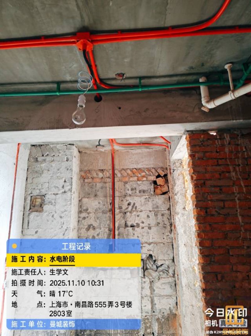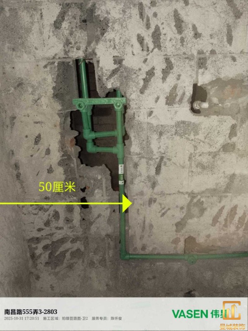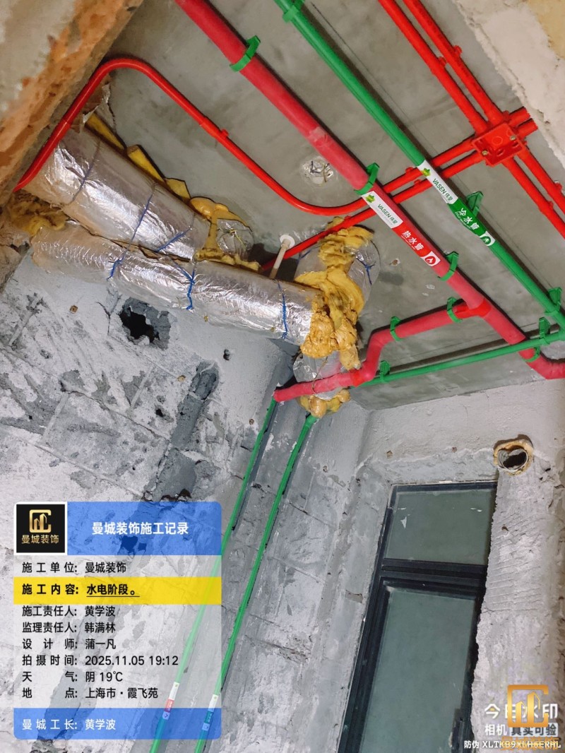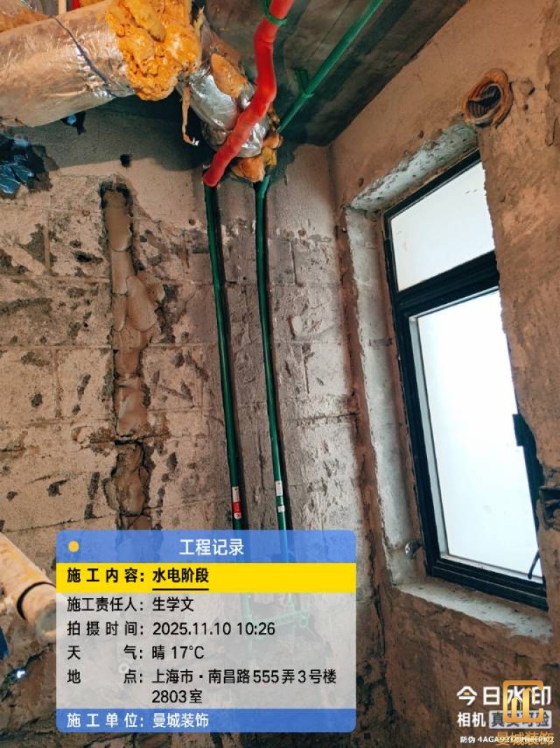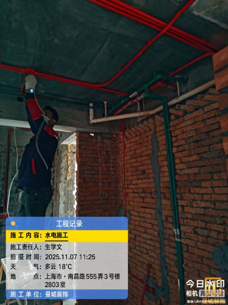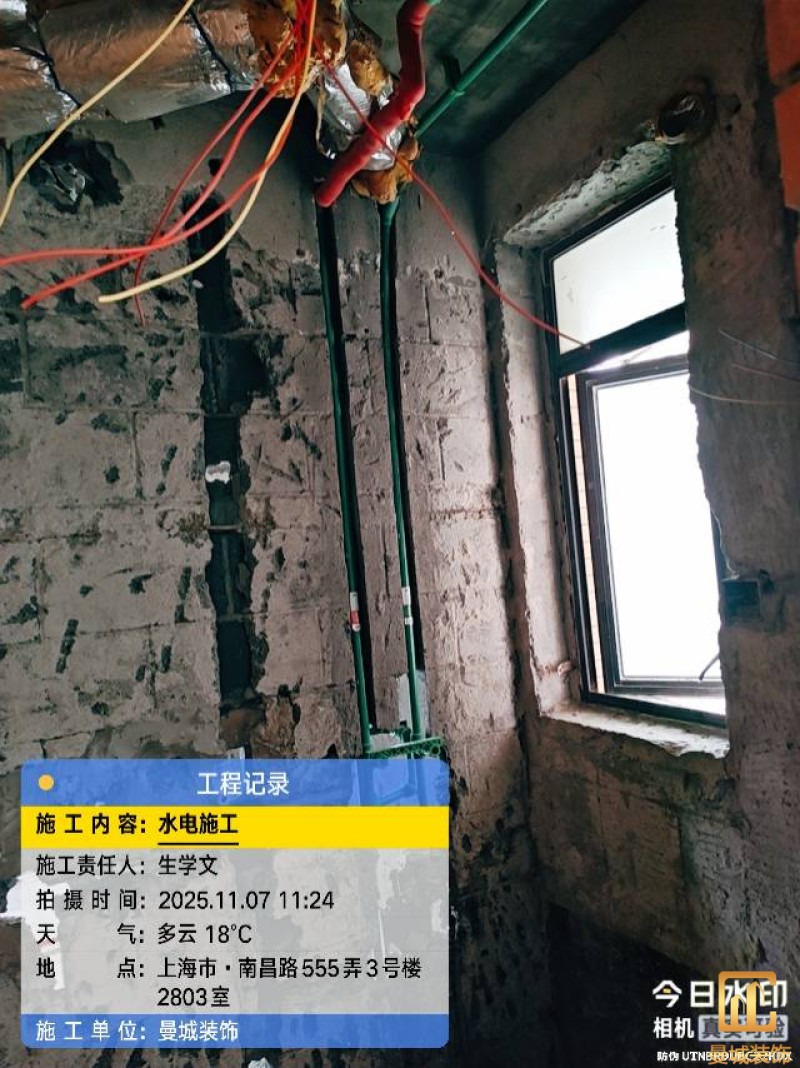 电工已进场施工,电工完工时间预估5个工作是,电线为熊猫、耐克耐。起帆电线1.5数量300米2.5数量为400米,网线超六类康普、熊猫、起帆 线管为中财/保利315中型6分管,按施工要求,厨房进线为4㎡,冰箱单独一路,卫生间进线为4㎡客厅空调为4㎡电线,总线路为11路,分别为 空调4路,厨房2路,卫生间1路,照明1路,房间插座1路,客餐厅1路。开关离地高度1.3米 插座离地35公分,空调插座离地高度2.2米。房间双控开关高度为550-600之间。开关插座总点位为80个。水走顶,电走地,水电不同槽,横槽不超过1米。地面开槽大弧湾工艺,强弱电间距200mm 以上,墙弱电交叉处用专用锡箔做信号屏蔽处理,默认煤气管40PVC管预埋高度离地1350cm。三角阀离地度度1400cm,电视机用50PVC管预埋高度350cm-1100cm 、默认花洒离地高度900-1000cm、马桶三角阀离地度度150-250cm,台盆三角阀离地度度350-400cm,墙排下水离地高度400-500cm,