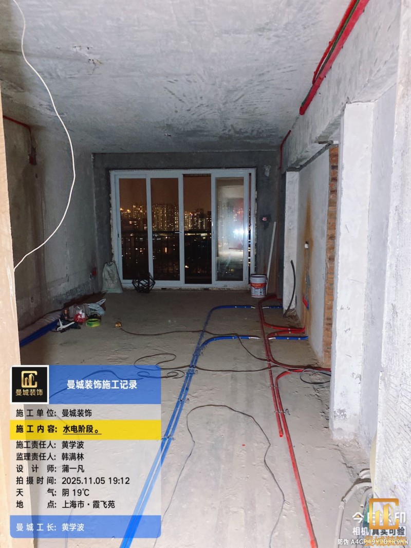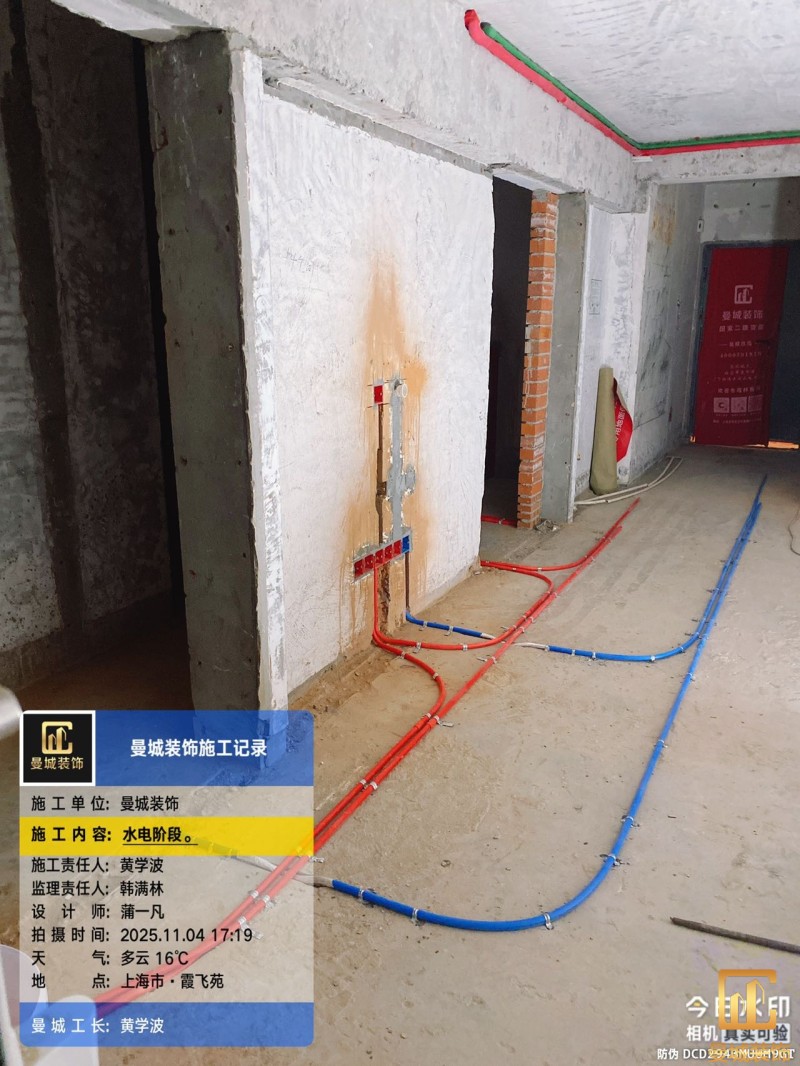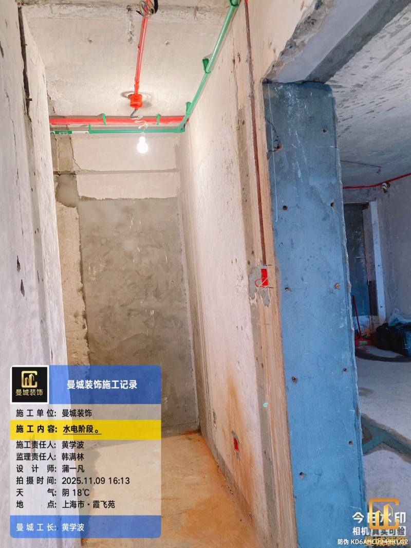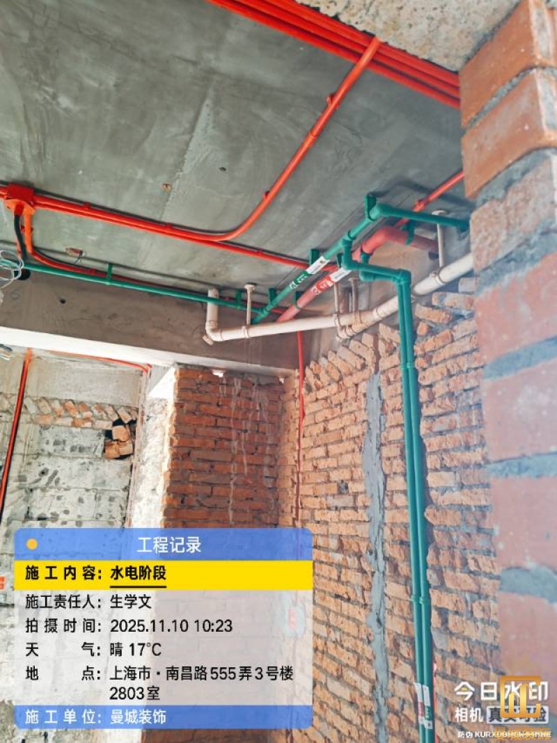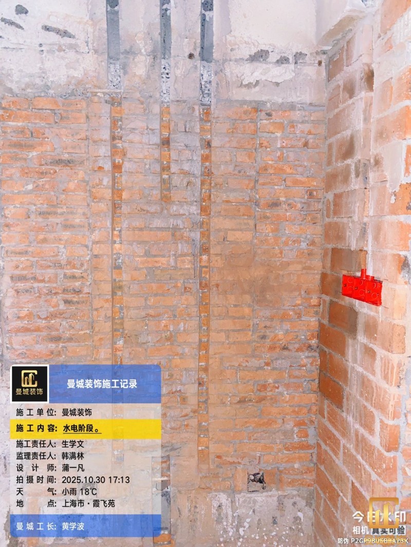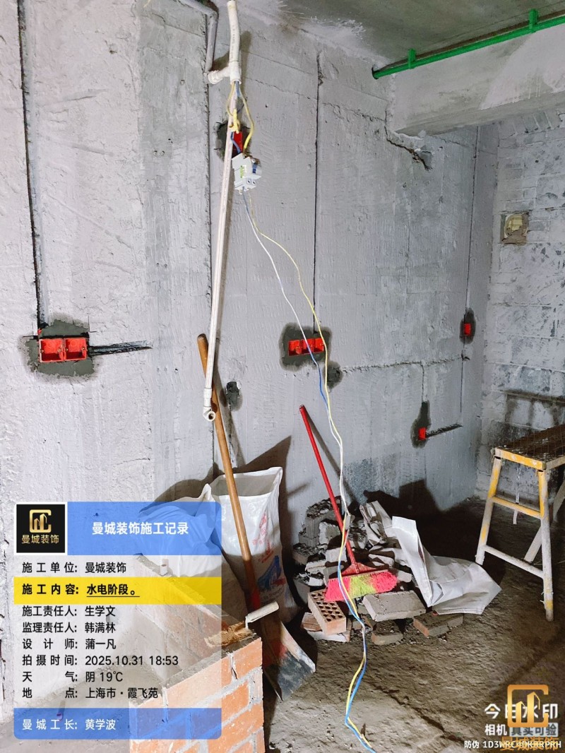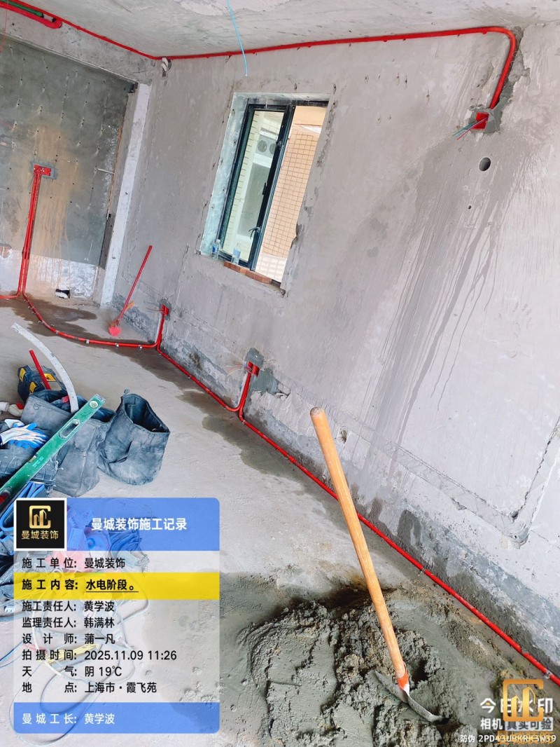 电工已进场施工,电工完工时间预估5个工作是,电线为熊猫、耐克耐。起帆电线1.5数量300米2.5数量为400米,网线超六类康普、熊猫、起帆 线管为中财/保利315中型6分管,按施工要求,厨房进线为4㎡,冰箱单独一路,卫生间进线为4㎡客厅空调为4㎡电线,总线路为11路,分别为 空调4路,厨房2路,卫生间1路,照明1路,房间插座1路,客餐厅1路。开关离地高度1.3米 插座离地35公分,空调插座离地高度2.2米。房间双控开关高度为550-600之间。开关插座总点位为80个。水走顶,电走地,水电不同槽,横槽不超过1米。地面开槽大弧湾工艺,强弱电间距200mm 以上,墙弱电交叉处用专用锡箔做信号屏蔽处理,默认煤气管40PVC管预埋高度离地1350cm。三角阀离地度度1400cm,电视机用50PVC管预埋高度350cm-1100cm 、默认花洒离地高度900-1000cm、马桶三角阀离地度度150-250cm,台盆三角阀离地度度350-400cm,墙排下水离地高度400-500cm,