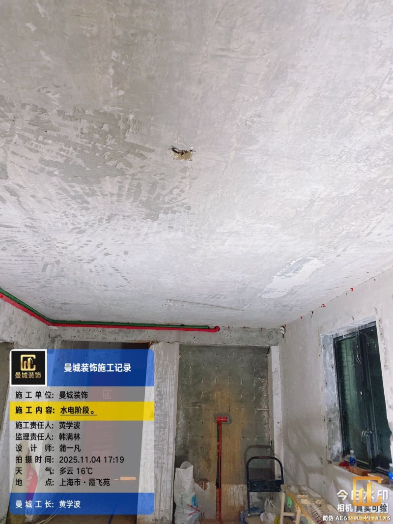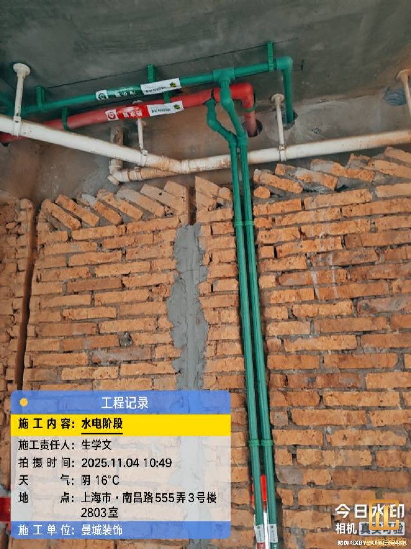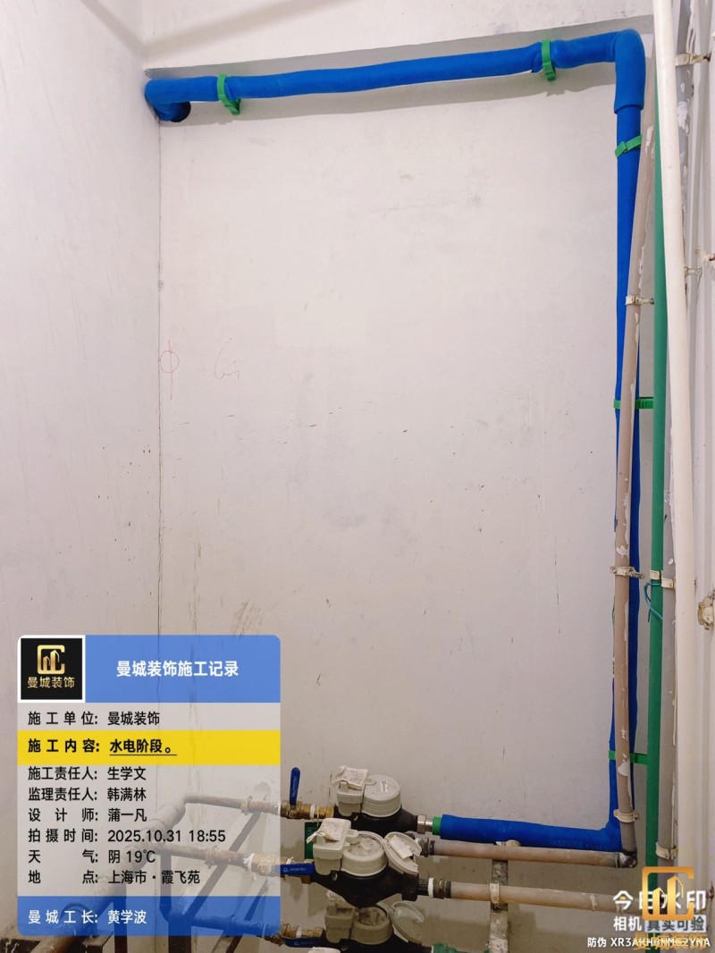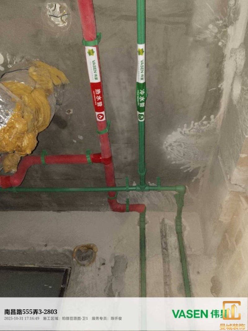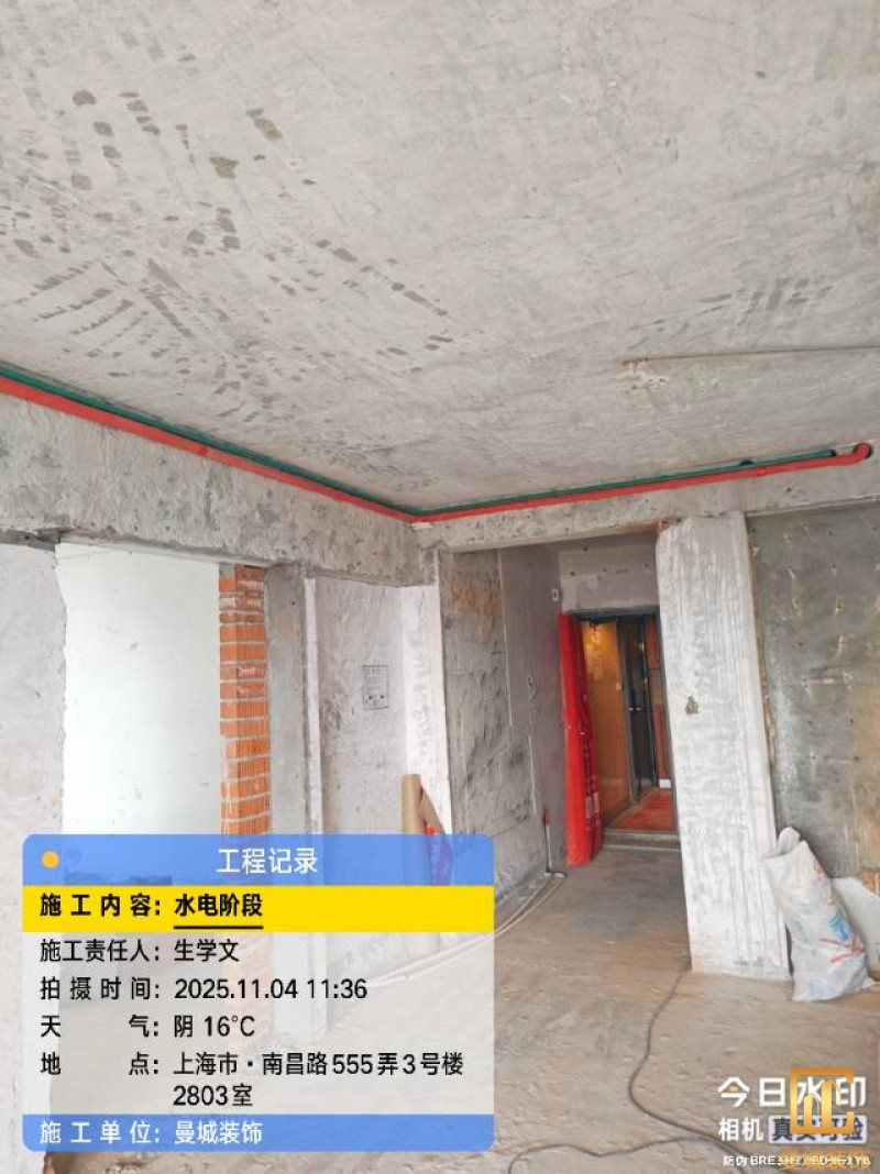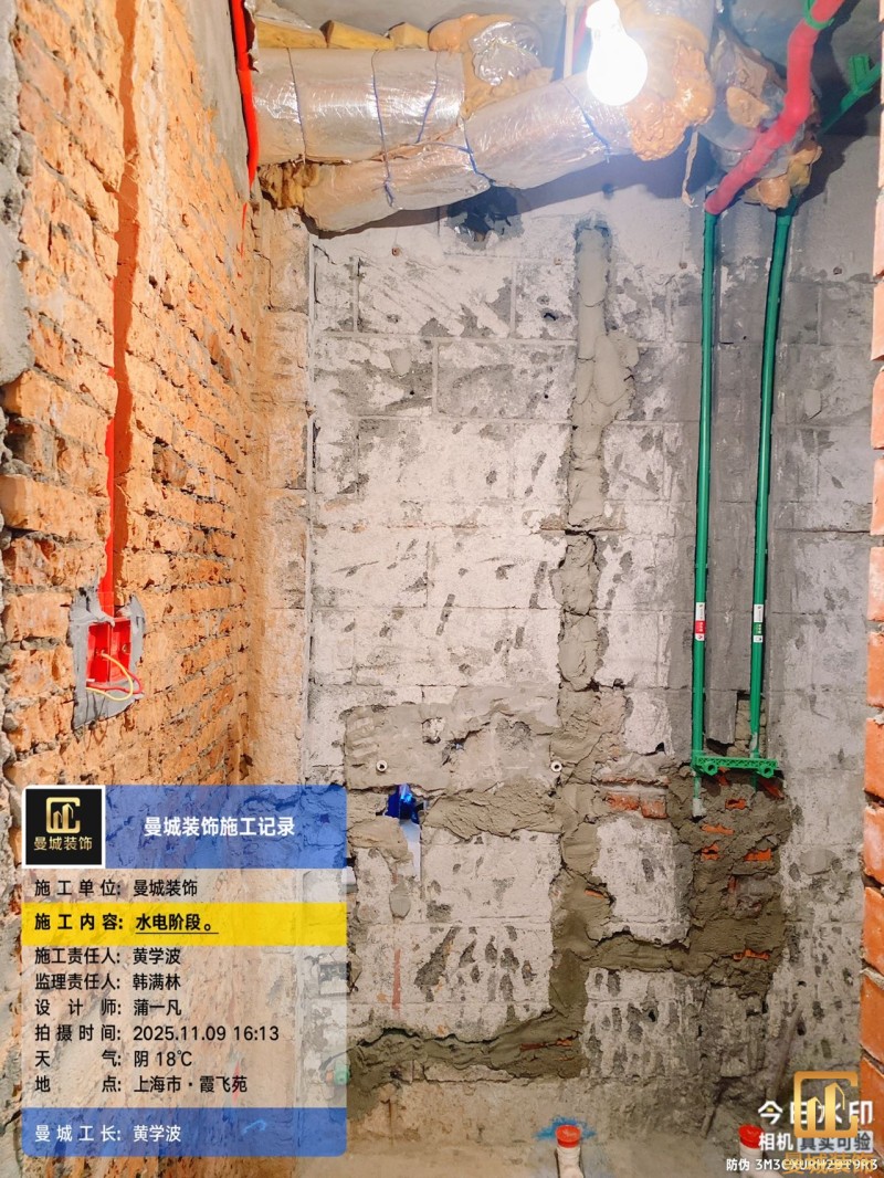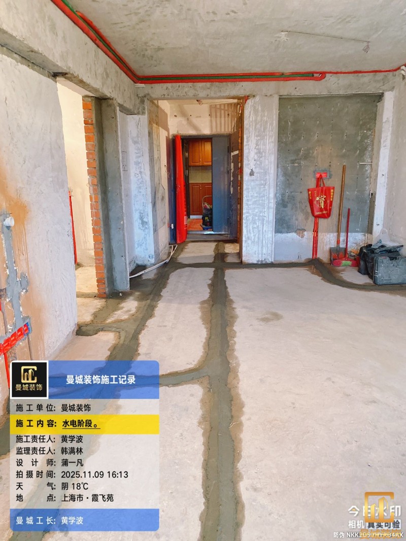 电工已进场施工,电工完工时间预估5个工作是,电线为熊猫、耐克耐。起帆电线1.5数量300米2.5数量为400米,网线超六类康普、熊猫、起帆 线管为中财/保利315中型6分管,按施工要求,厨房进线为4㎡,冰箱单独一路,卫生间进线为4㎡客厅空调为4㎡电线,总线路为11路,分别为 空调4路,厨房2路,卫生间1路,照明1路,房间插座1路,客餐厅1路。开关离地高度1.3米 插座离地35公分,空调插座离地高度2.2米。房间双控开关高度为550-600之间。开关插座总点位为80个。水走顶,电走地,水电不同槽,横槽不超过1米。地面开槽大弧湾工艺,强弱电间距200mm 以上,墙弱电交叉处用专用锡箔做信号屏蔽处理,默认煤气管40PVC管预埋高度离地1350cm。三角阀离地度度1400cm,电视机用50PVC管预埋高度350cm-1100cm 、默认花洒离地高度900-1000cm、马桶三角阀离地度度150-250cm,台盆三角阀离地度度350-400cm,墙排下水离地高度400-500cm,