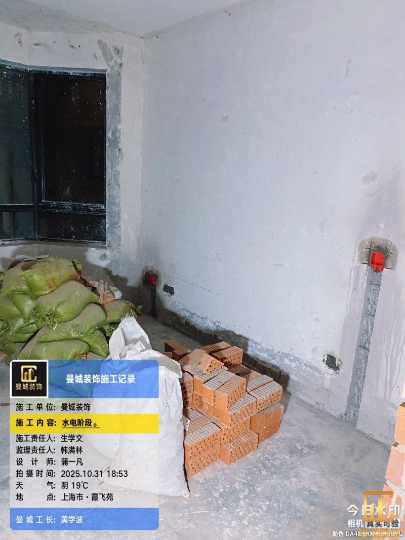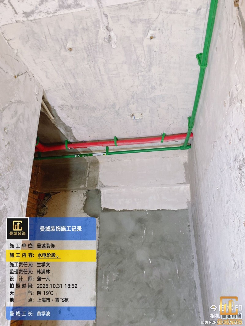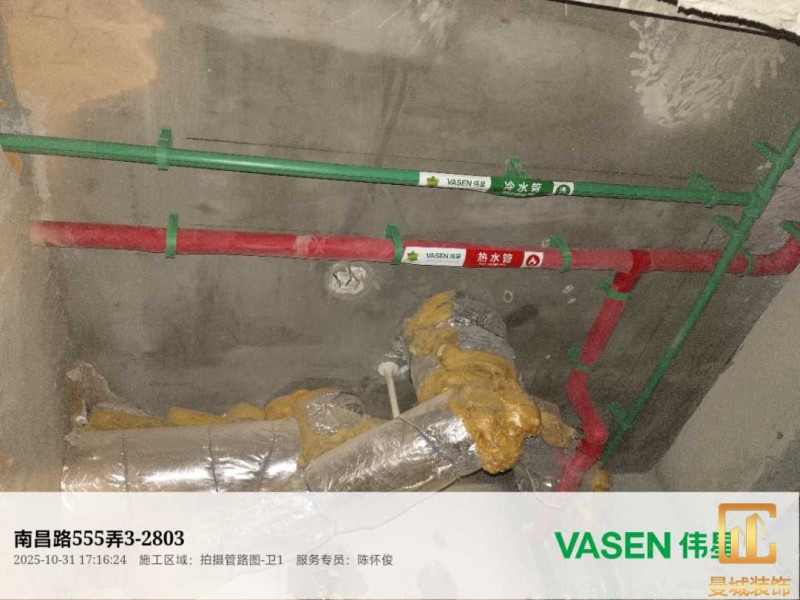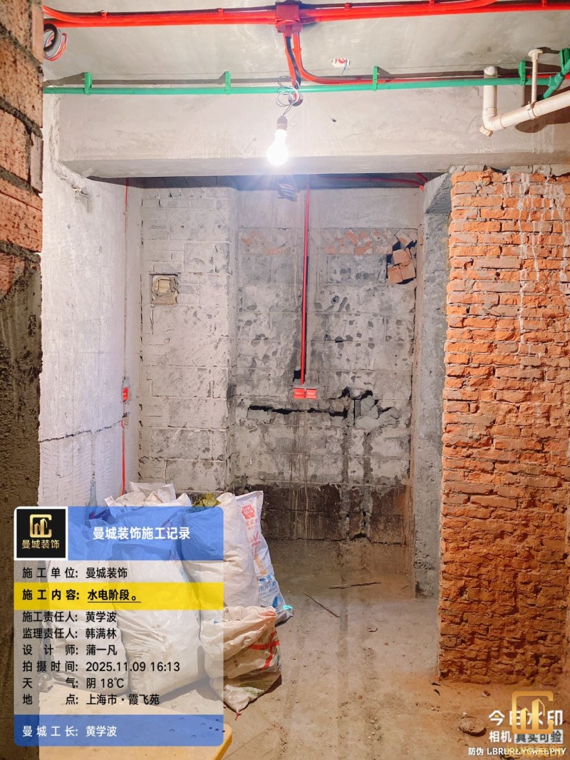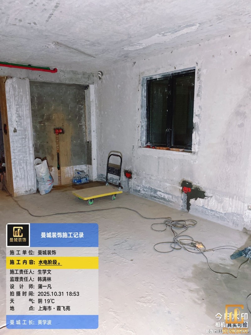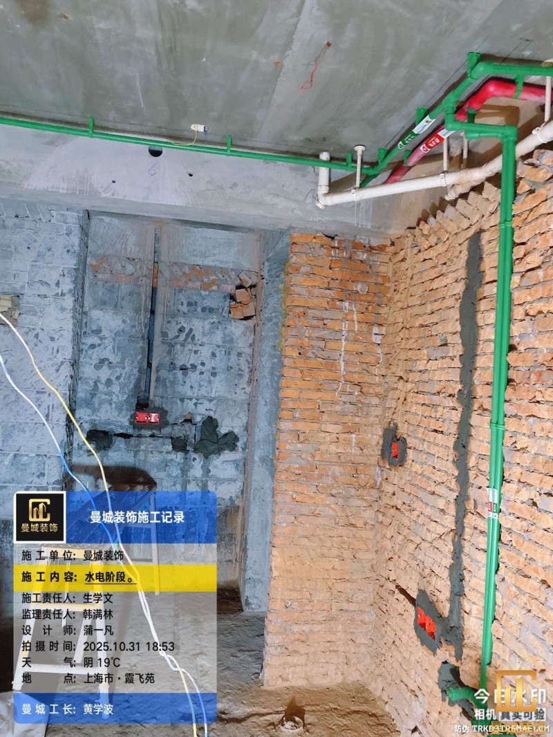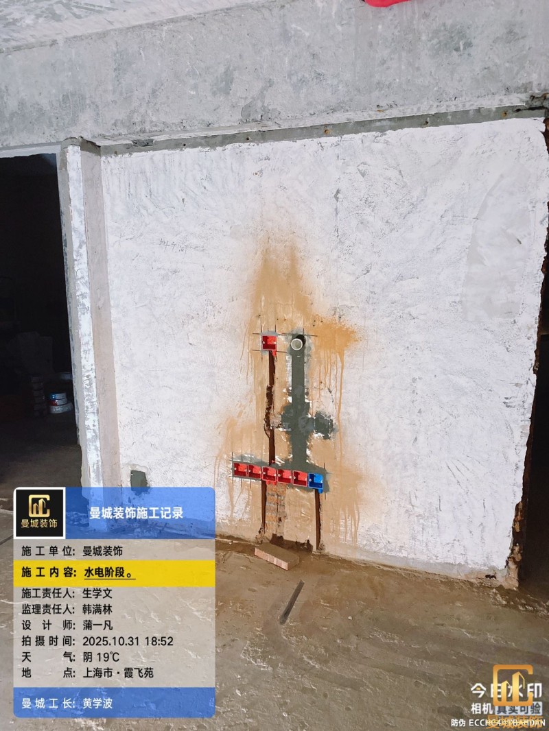 电工已进场施工,电工完工时间预估5个工作是,电线为熊猫、耐克耐。起帆电线1.5数量300米2.5数量为400米,网线超六类康普、熊猫、起帆 线管为中财/保利315中型6分管,按施工要求,厨房进线为4㎡,冰箱单独一路,卫生间进线为4㎡客厅空调为4㎡电线,总线路为11路,分别为 空调4路,厨房2路,卫生间1路,照明1路,房间插座1路,客餐厅1路。开关离地高度1.3米 插座离地35公分,空调插座离地高度2.2米。房间双控开关高度为550-600之间。开关插座总点位为80个。水走顶,电走地,水电不同槽,横槽不超过1米。地面开槽大弧湾工艺,强弱电间距200mm 以上,墙弱电交叉处用专用锡箔做信号屏蔽处理,默认煤气管40PVC管预埋高度离地1350cm。三角阀离地度度1400cm,电视机用50PVC管预埋高度350cm-1100cm 、默认花洒离地高度900-1000cm、马桶三角阀离地度度150-250cm,台盆三角阀离地度度350-400cm,墙排下水离地高度400-500cm,