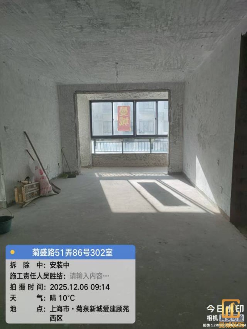 尊敬的老师您好:我是曼城力工吴彦雷,老师您家的拆除工作已按曼城拆除施工标准如期完成 ,同时我已按公司要求把相关的施工要求已上传到曼城透明装修小程序、供老师及公司工程部检查,,墙面空鼓处已处理完成、所有下水通畅并已保护好 防盗门窗户完好无破损,现场已清理干净。。感谢老师选择曼城装饰,祝老师装修愉快
