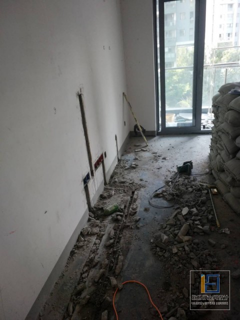 毛坯房,原先窗户有点渗水,我们进场做了个验房,帮客户铲倒了红砖,现在开始做水电了。
